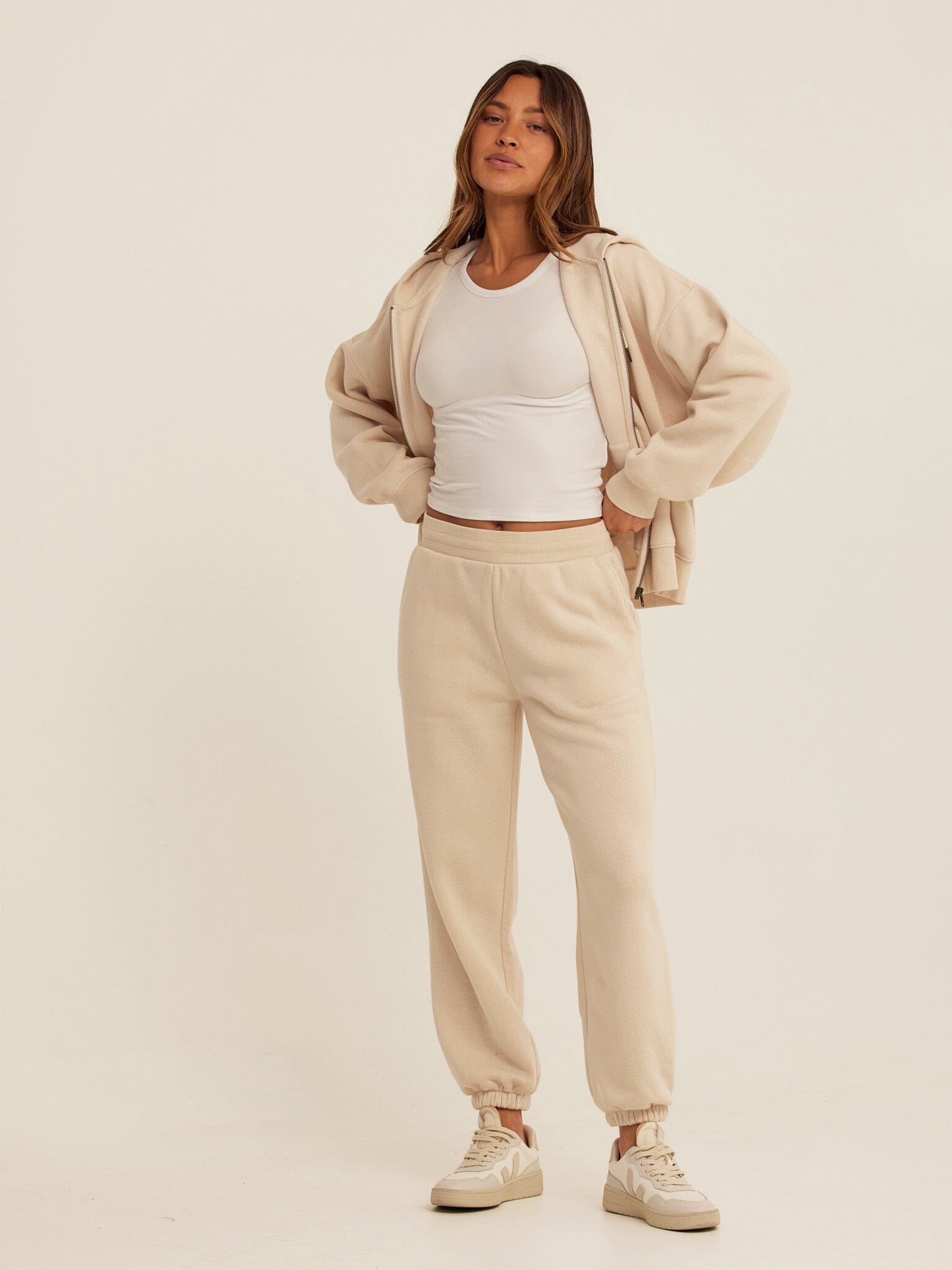 An everyday essential designed for comfort that lasts. The Jayla Triblend Fleece Jogger is made from our best-selling Triblend Fleece for a soft, lightweight warmth that feels easy all day. The relaxed fit offers room to move without feeling oversized, while the elastic waistband provides a comfortable, pull-on fit. Finished with ribbed cuffs and side pockets, this jogger is perfect for lounging, travel days, or casual wear on the go.
