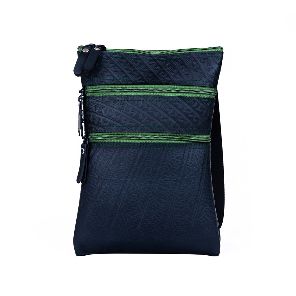 The Maggie Inner Tube Vegan Bag is designed to be petite yet practical. The ideal size for an iPad Mini or Kindle Fire, this small and contemporary cross-body bag comes with top zip fastening and two outer zip pockets. The reclaimed rubber is easy to maintain and durable enough to put up with everyday use.