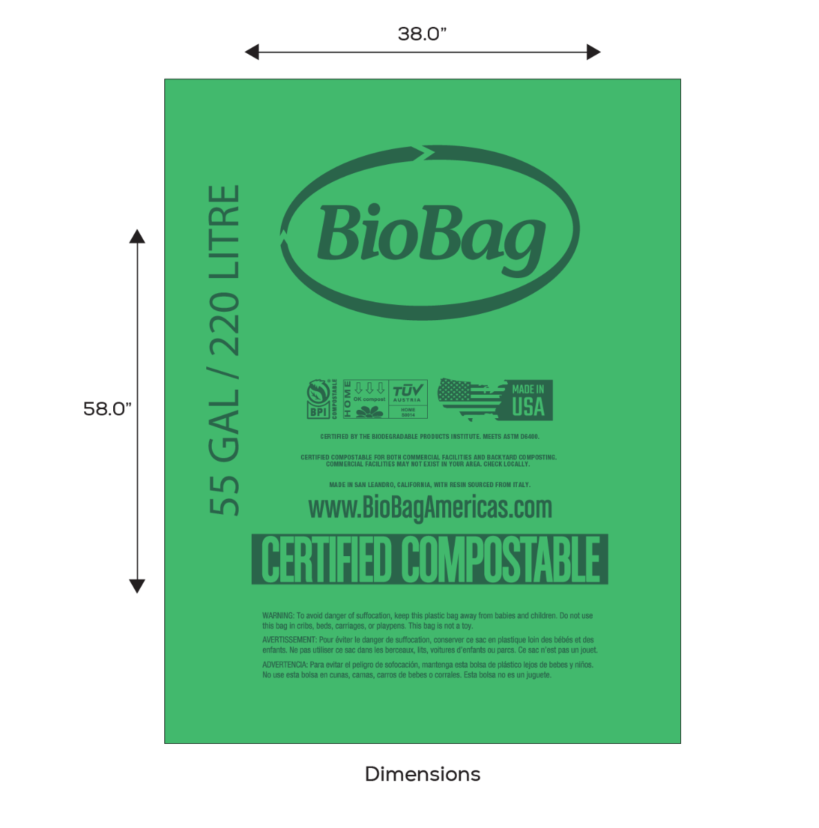 BioBag 44 Gallon Compostable Bags 34x48 Green (QTY 80), BPI Certified, SKU 44G3448