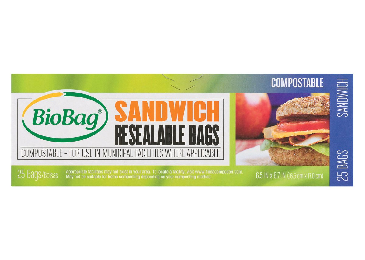 Biobag Resealable Food Storage Bags, 6.5" x 6.7", 1.8 mil (QTY: 300 Bags)