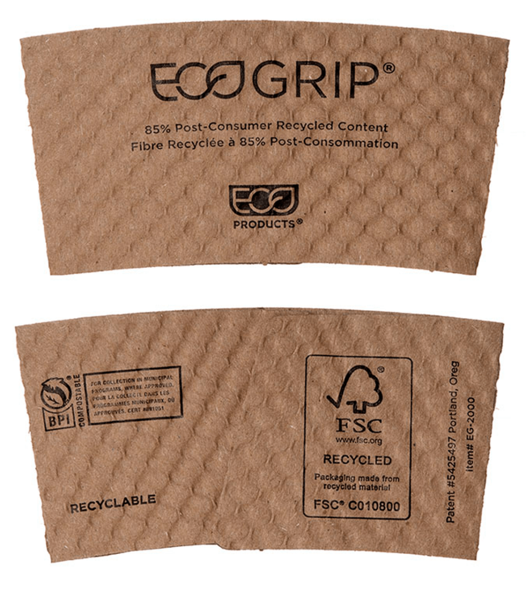 EcoGrip Hot Cup Sleeves - Renewable & Compostable, At least 85% Post-Consumer Fiber