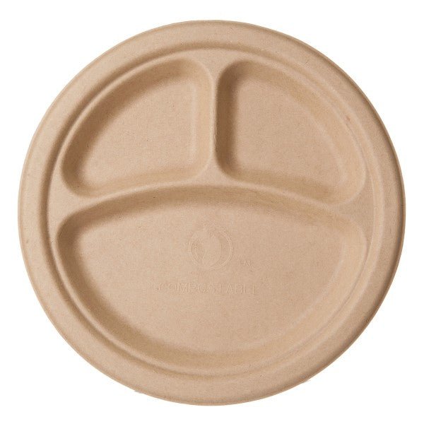 Great for hot or cold use, and sturdy enough to load up with food. Made from molded sugarcane fiber, a reclaimed material with great thermal properties. Natural brown color. Made from plants. Commercially compostable where accepted.