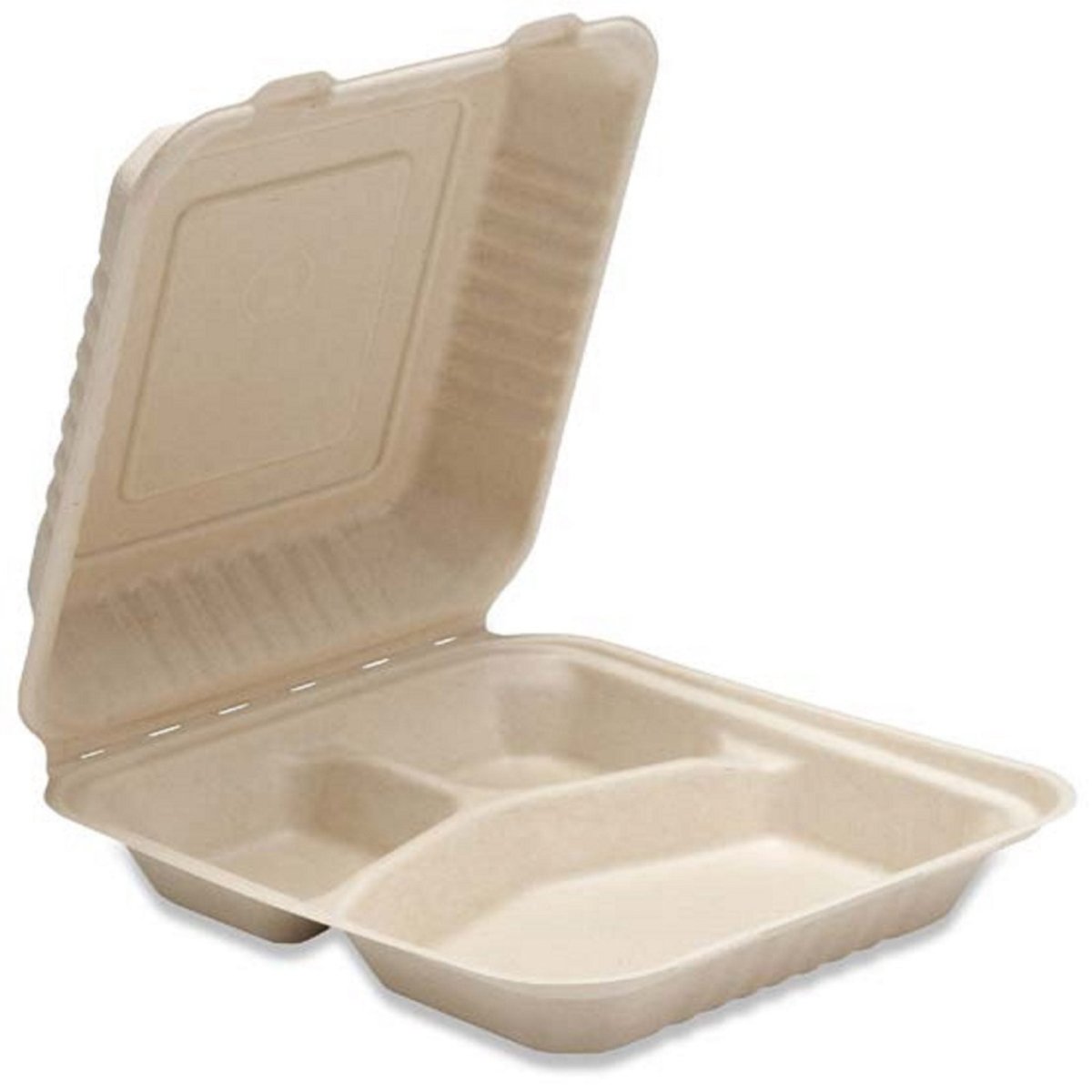 Vegware 8" 3-Compt Clamshell Natural Brown (QTY:200)