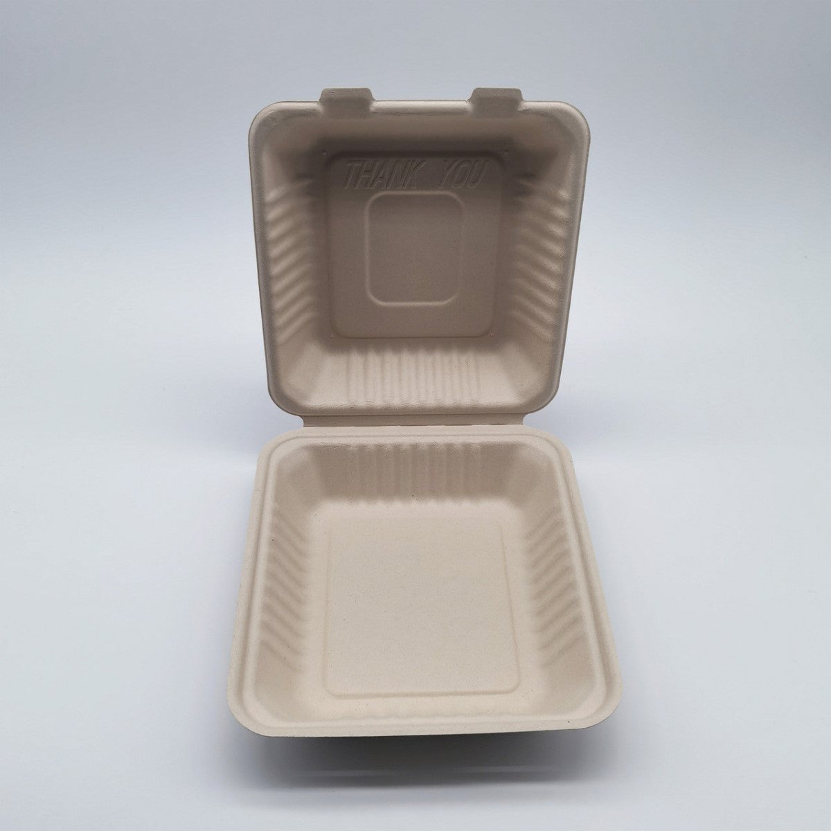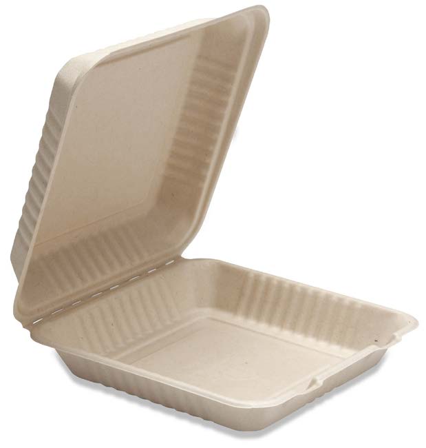 Practical and friendly 9in clamshell container. Our clamshell box is made from natural molded fiber, an eco-friendly alternative to polystyrene and traditional plastic. This natural material has great thermal properties but doesn’t trap condensation like plastic, so food stays hot and crispy. Our hinged container is suitable for hot or cold food to go meals, plus freezable and microwaveable. Made from bagasse/sugarcane, natural fiber. Tree-free! Natural brown color. Award-winning quality by Vegware, made from plants. Commercially compostable where accepted.