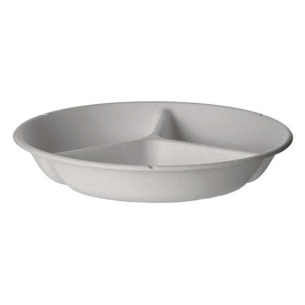 Vegware 9in Round 3-Comp Base, White Molded Fiber (QTY:400)
