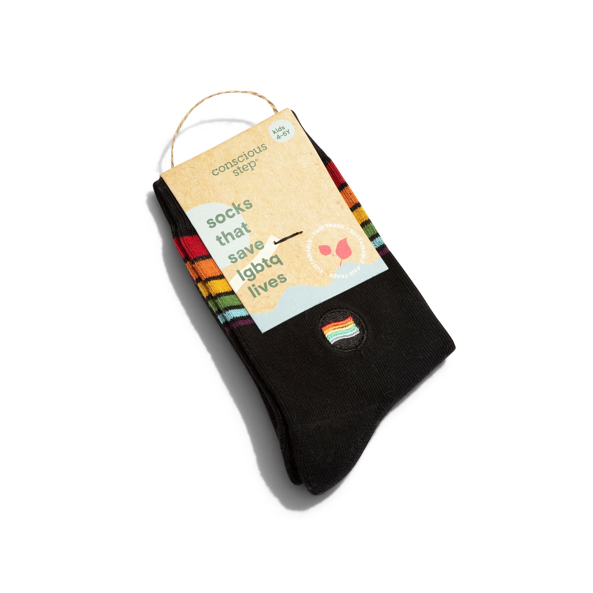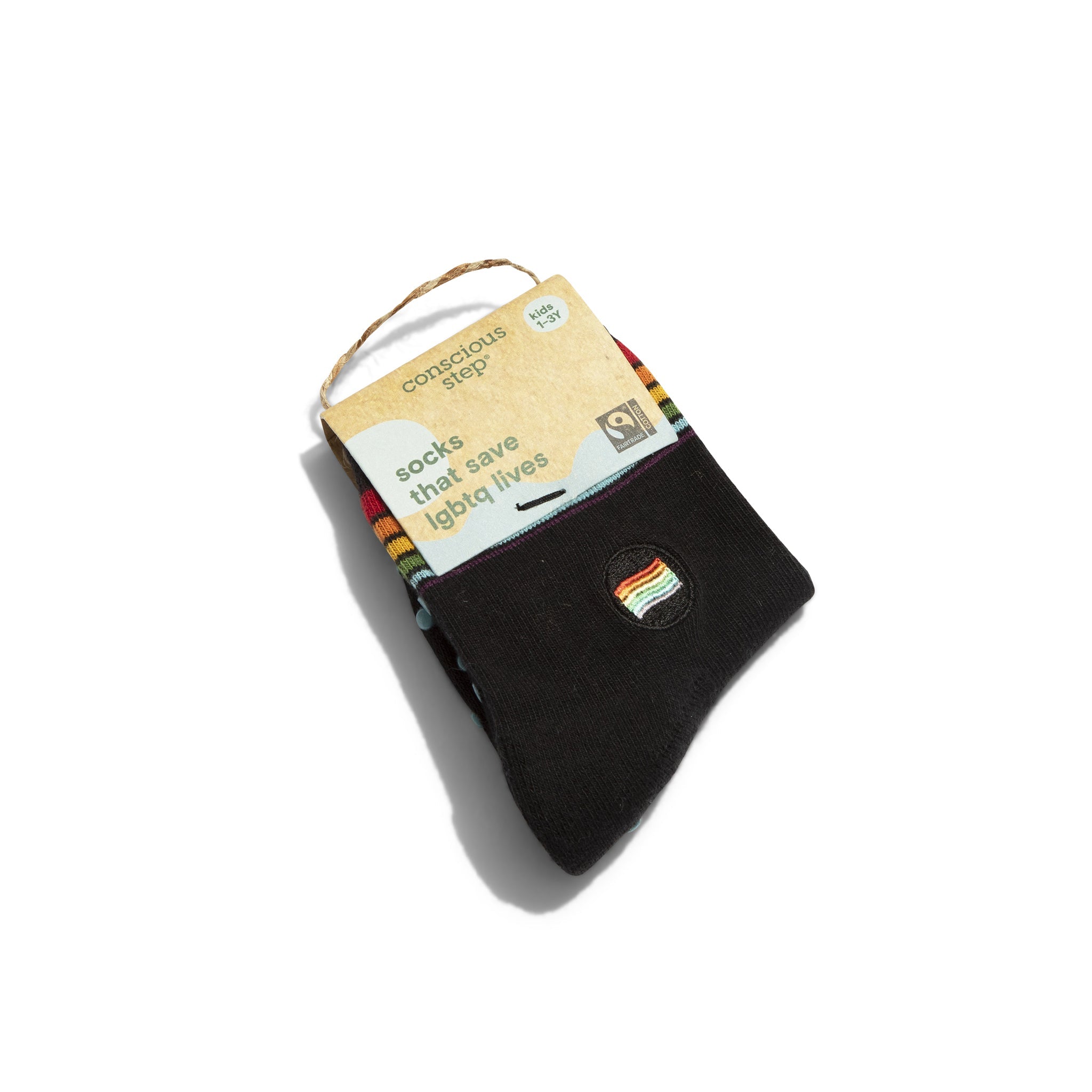 Introduce your little one to a world of love, acceptance, and appreciation with rainbow striped socks that save LGBTQ lives.