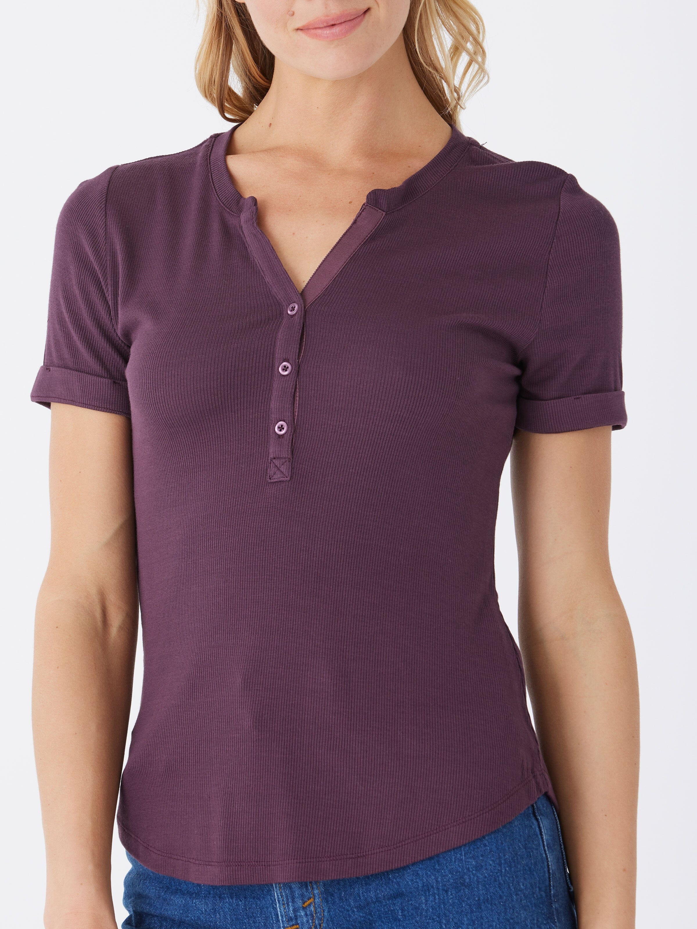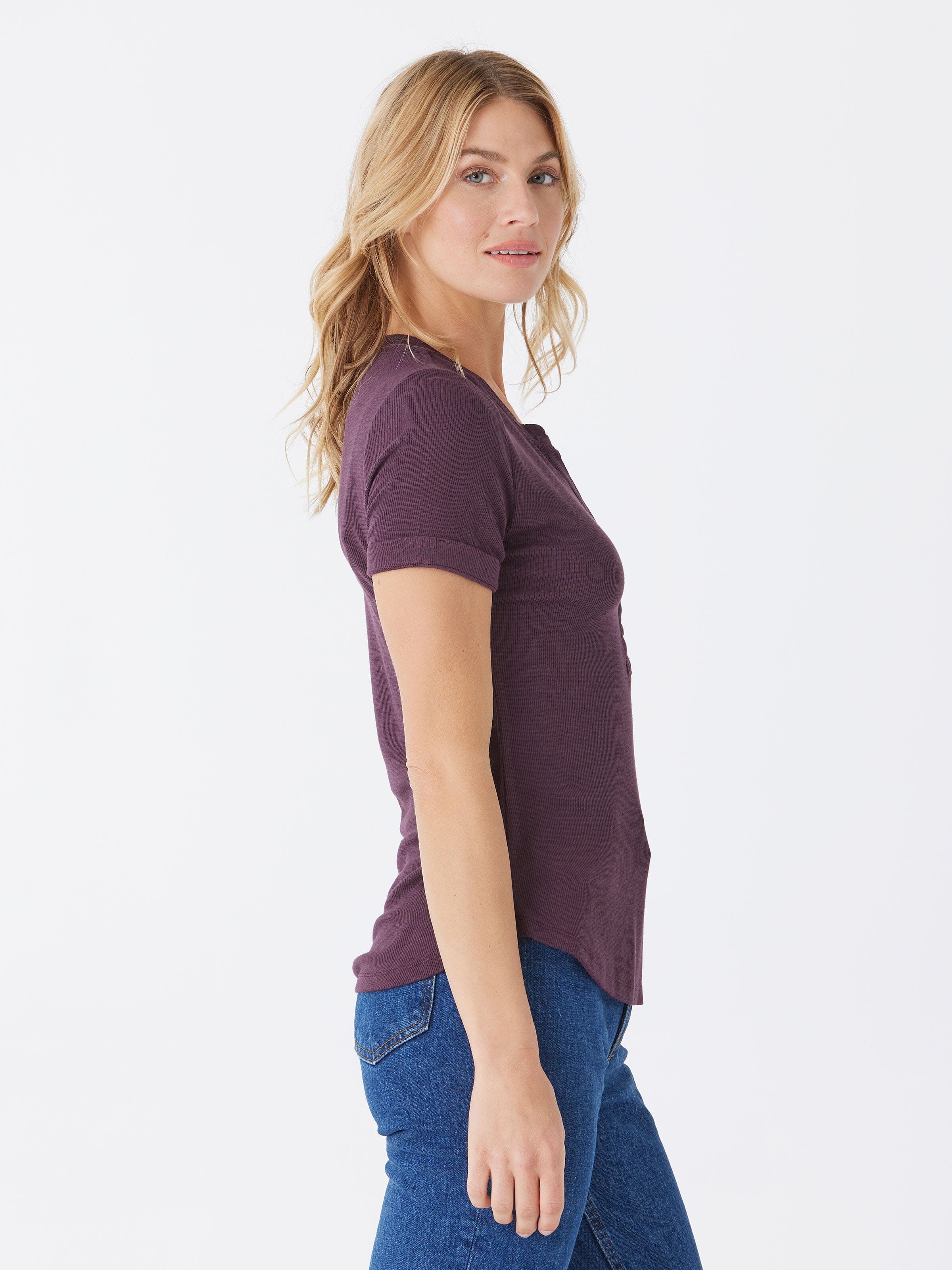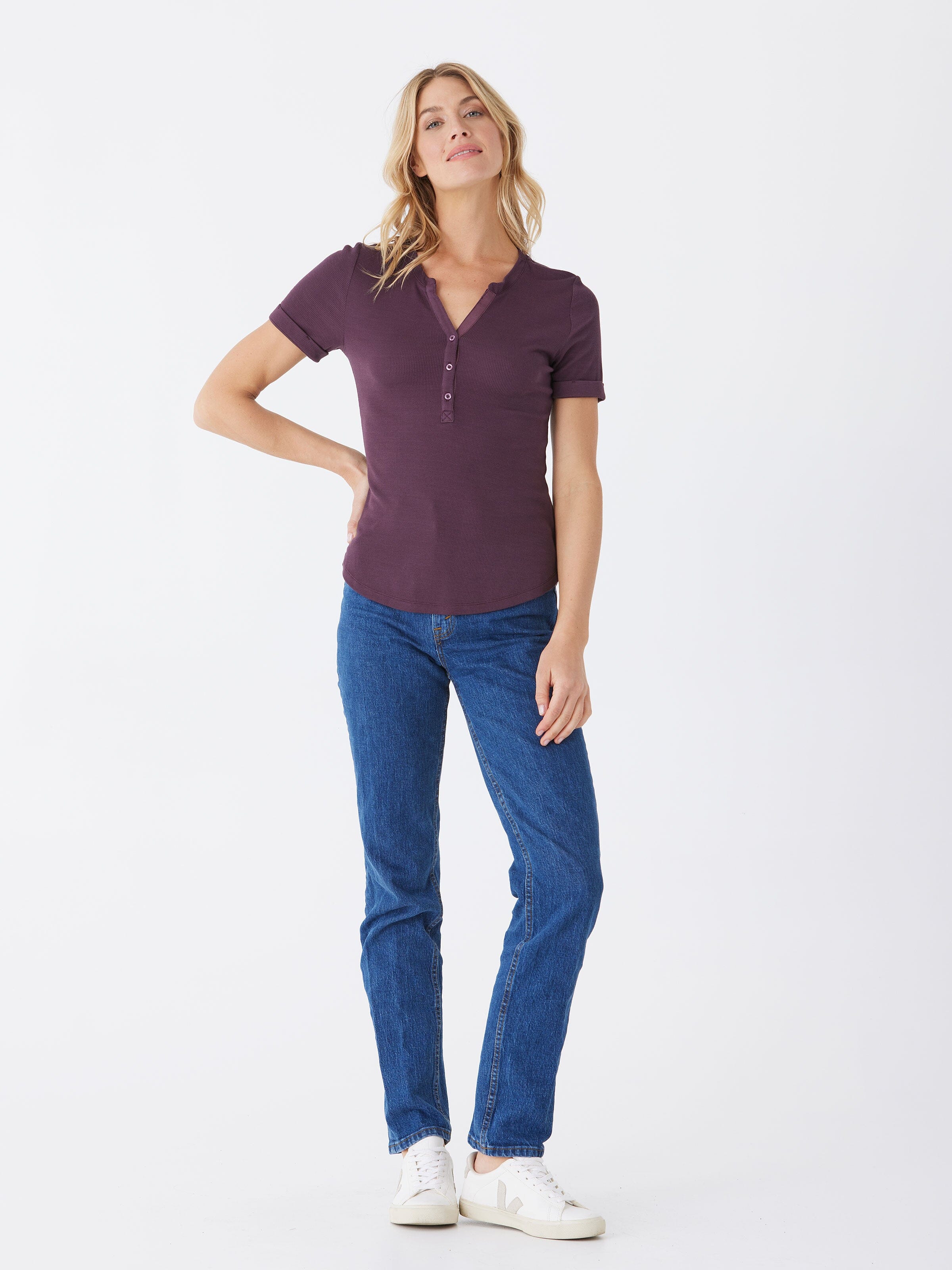 Introducing the Akia Feather Rib Henley Tee - the perfect blend of softness and style. With a ribbed texture and stretchy fabric, it offers a relaxed fit for all-day comfort. Complete with a 3 button detail and cuffed sleeves, this tee is a must-have for any wardrobe.