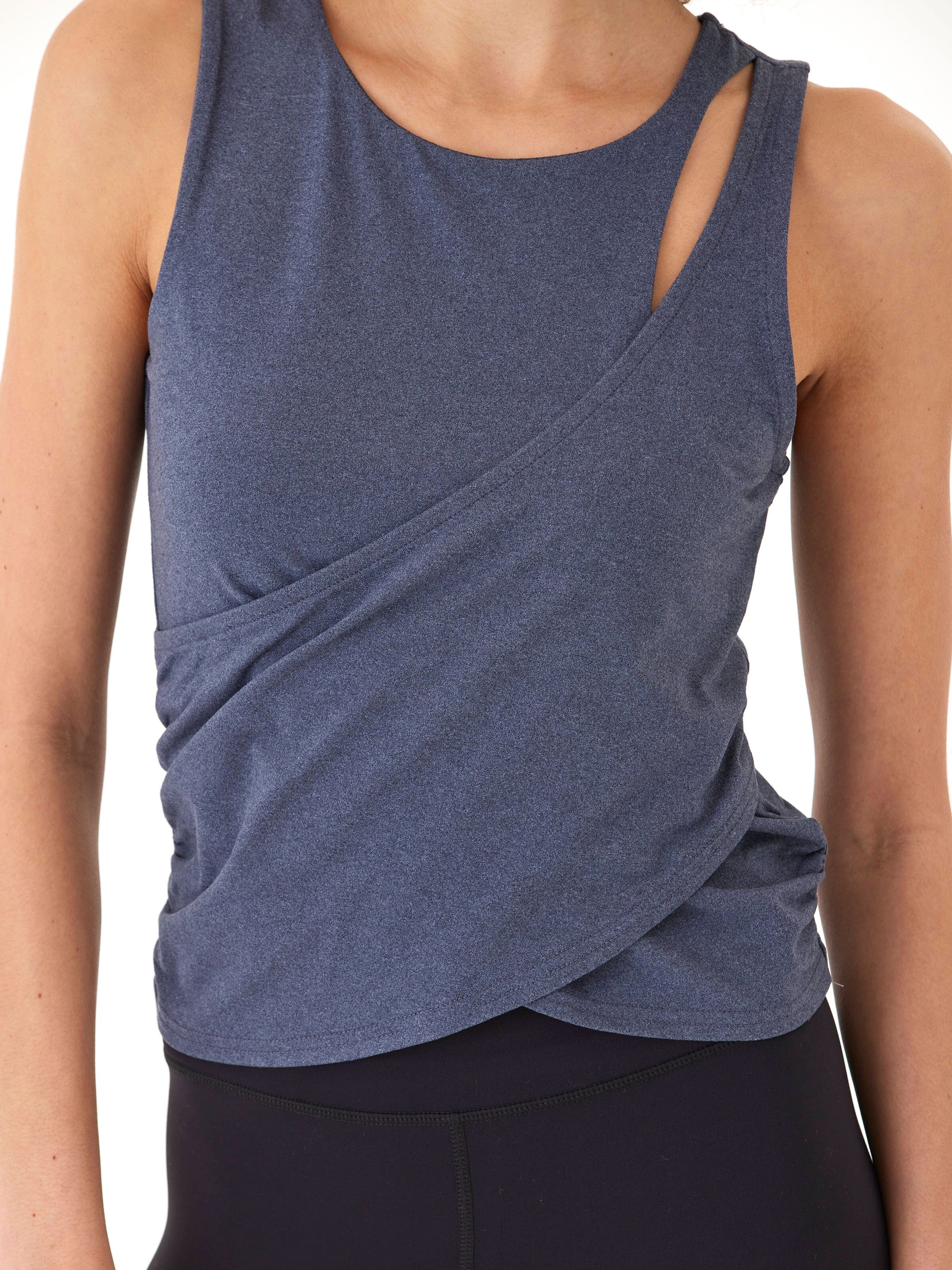 Indulge in the luxurious comfort of our Cynthia Luxe Jersey Wrap Tank. Made from our buttery soft and ultra stretchy luxe jersey fabric, this tank not only feels amazing on the skin but also features an elegant shoulder detail and a fun twist front.