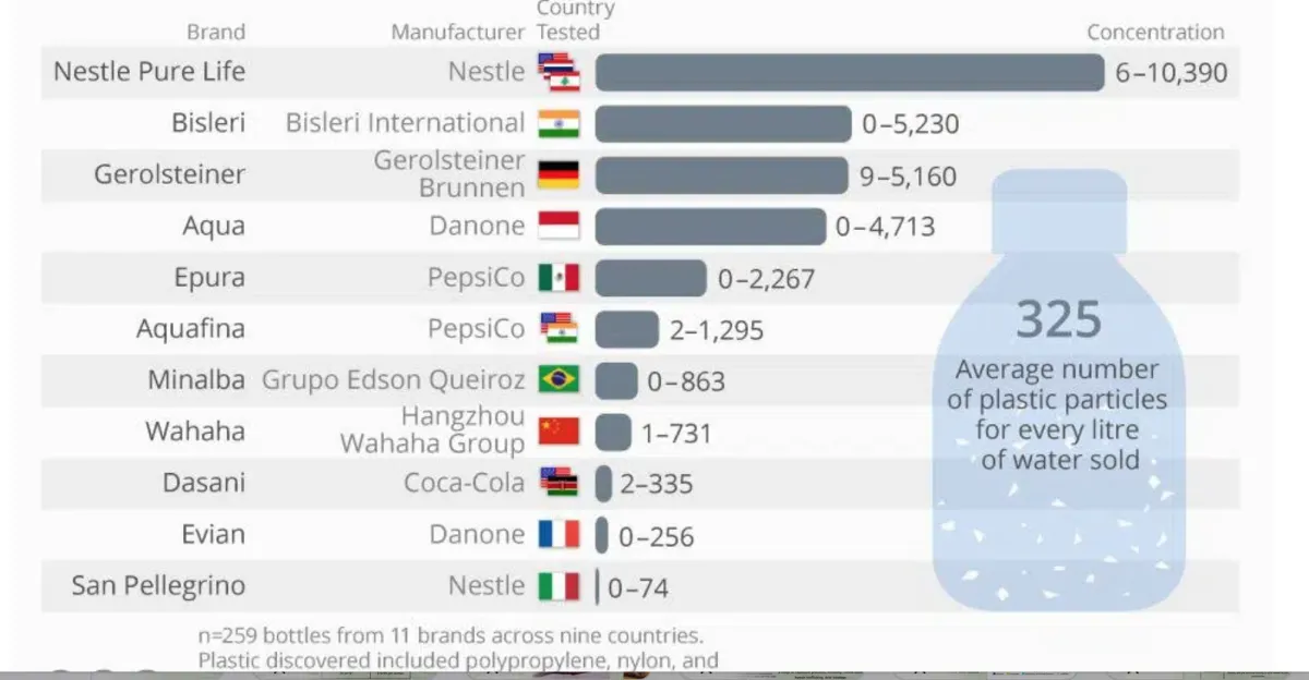 Study Finds Microplastics in 93% of Bottled Water, Forbes Mar 2018