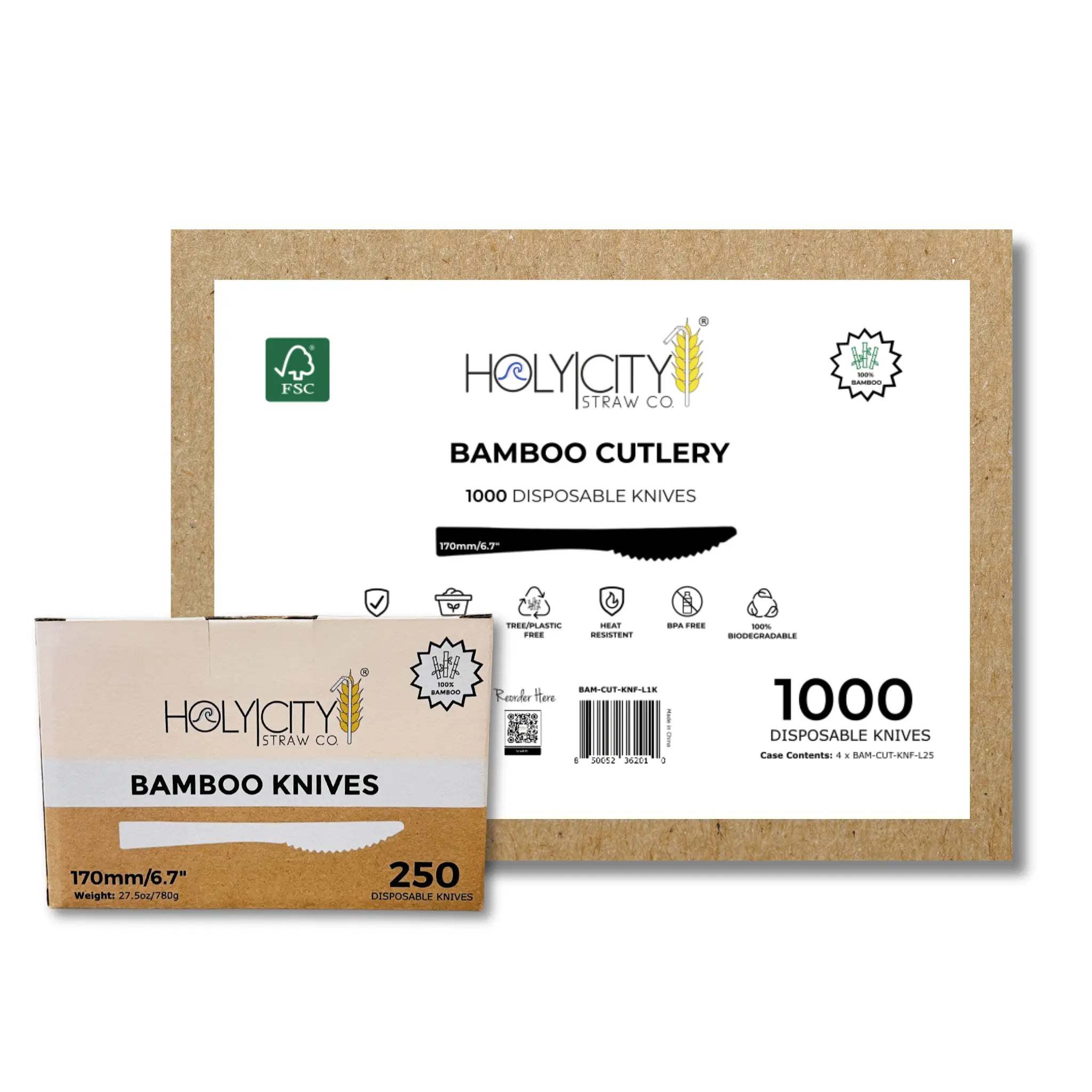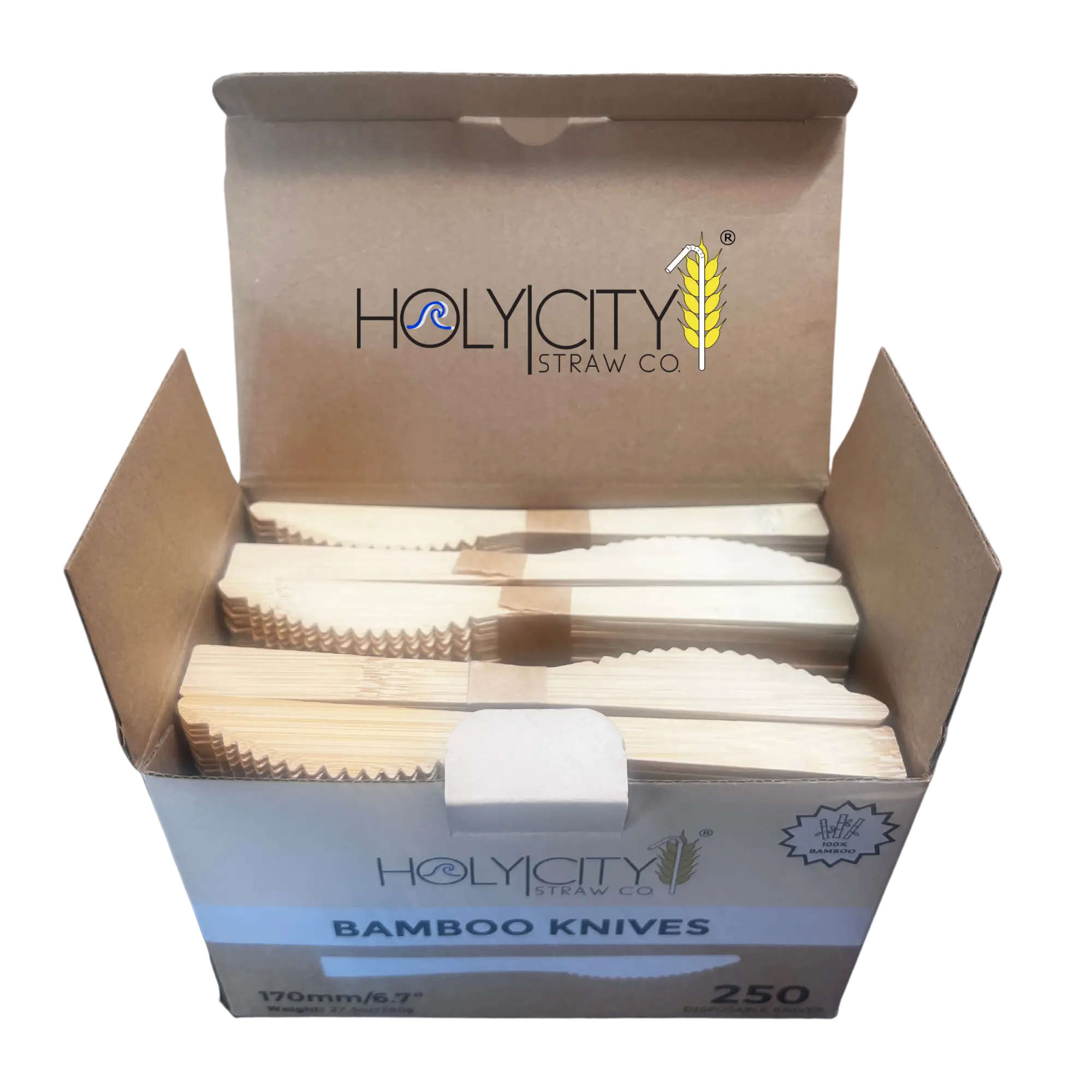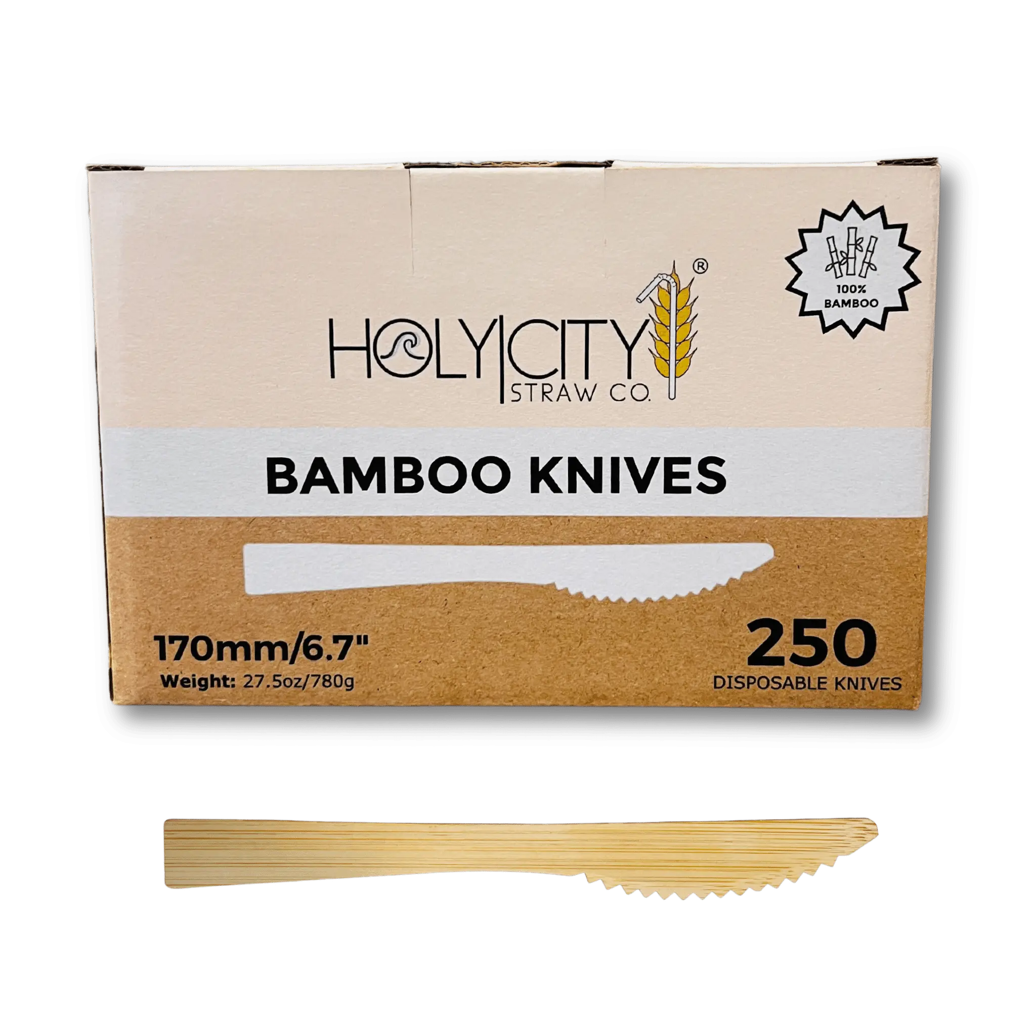 Introducing our eco-friendly 6.7" disposable bamboo knives - the perfect blend of sustainability and functionality! Crafted with precision from high-grade bamboo, these knives are not only durable and water-resistant but also naturally antibacterial, ensuring a hygienic dining experience. Bamboo, one of the fastest-growing grasses on the planet, regenerates from its roots and is carbon negative, absorbing more greenhouse gasses and producing more oxygen than plants or trees.