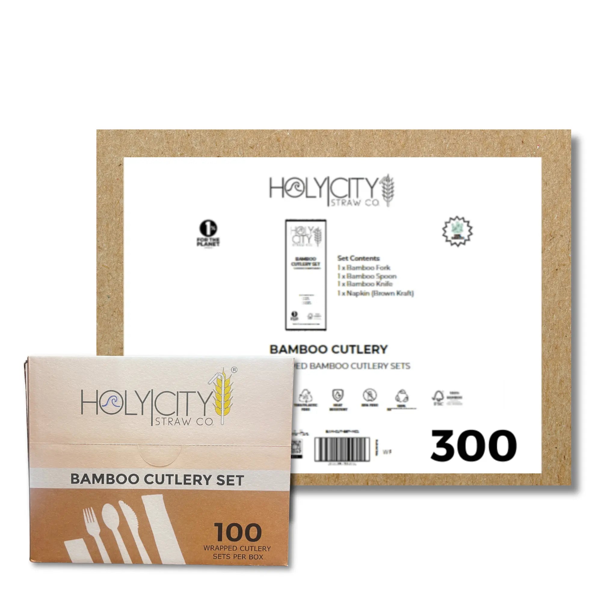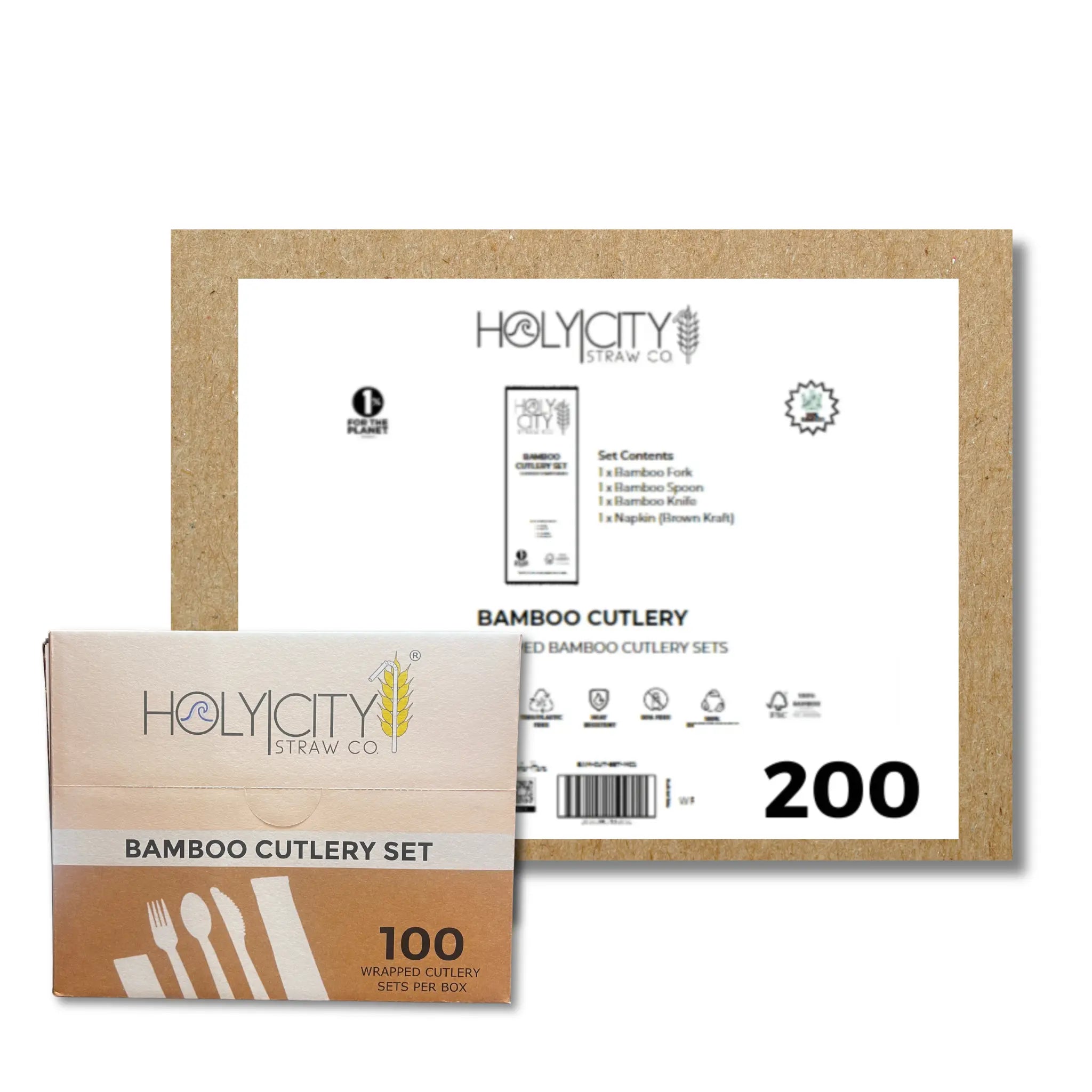 Box Contents: 100 Bamboo Cutlery Sets