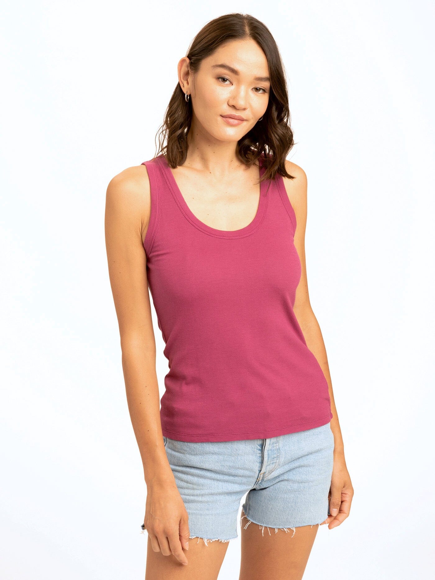 Our super soft Amazonia Feather Rib Tank is a wardrobe staple, perfect for layering or worn on its own. Featuring a classic slim fit and scoop neck.