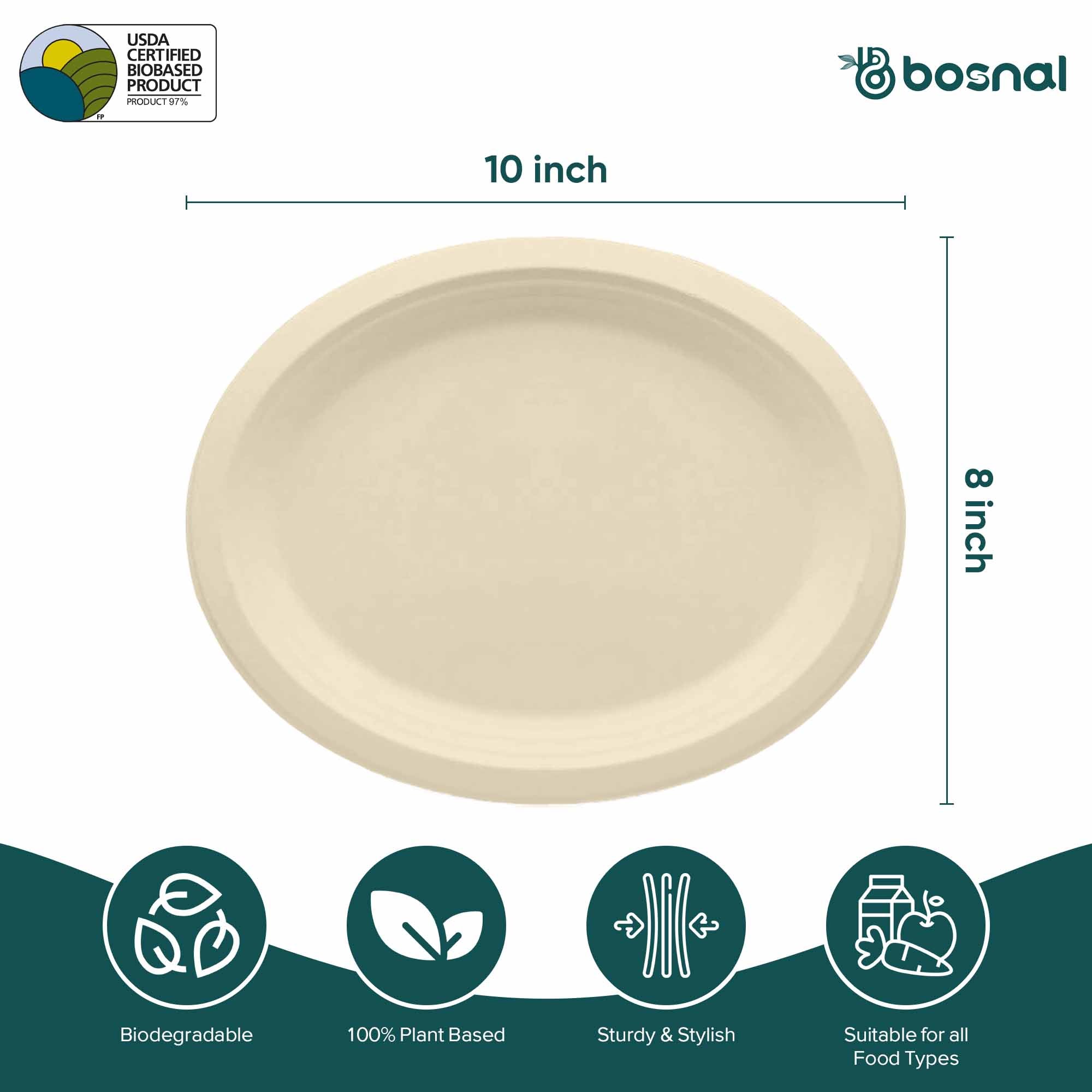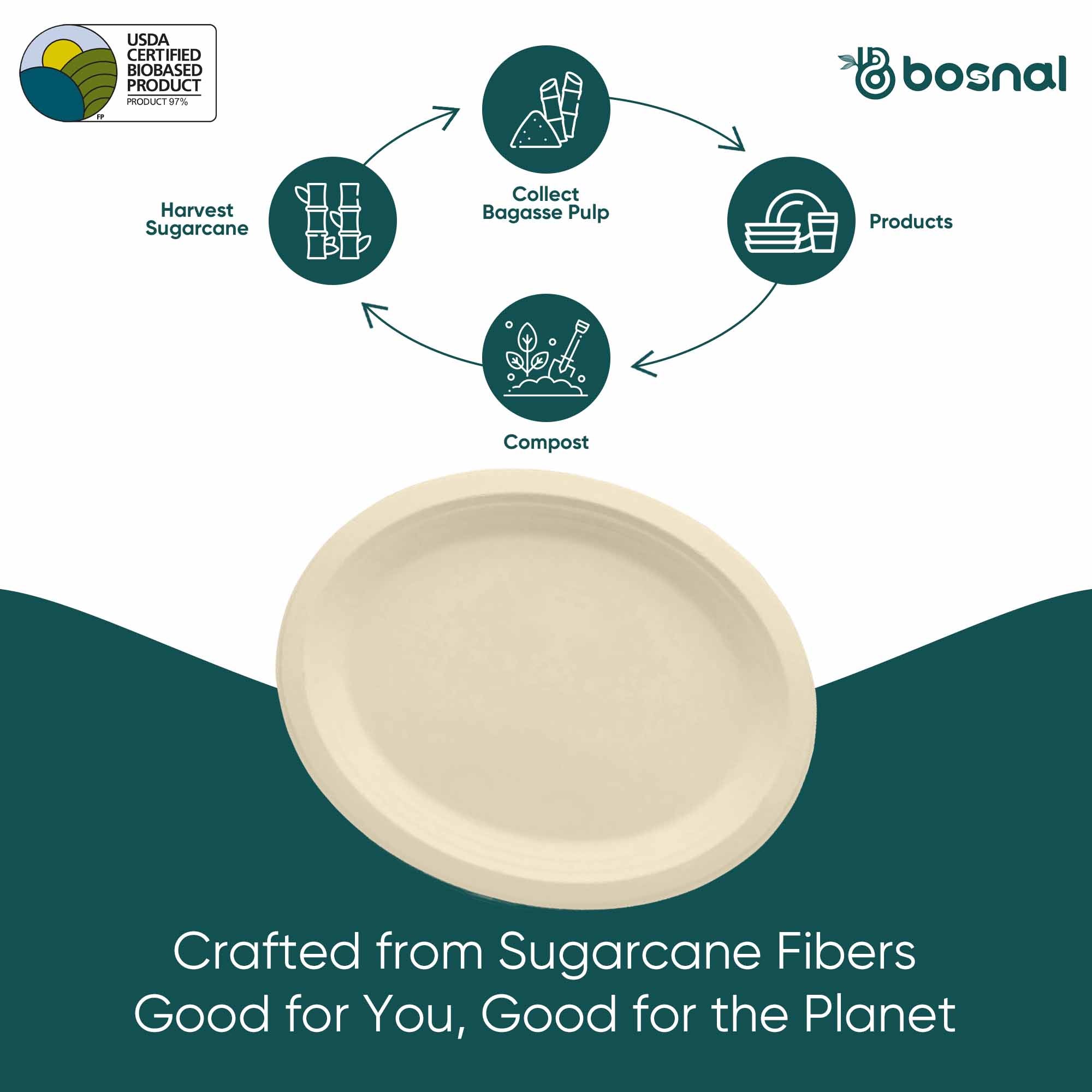 Upgrade your dining experience with BOSNAL 10 Inch Oval Compostable Plates. Made from 100% reclaimed sugarcane fibers (bagasse), these eco-friendly plates are fully biodegradable and suitable for composting-helping you enjoy meals sustainably while reducing environmental impact.