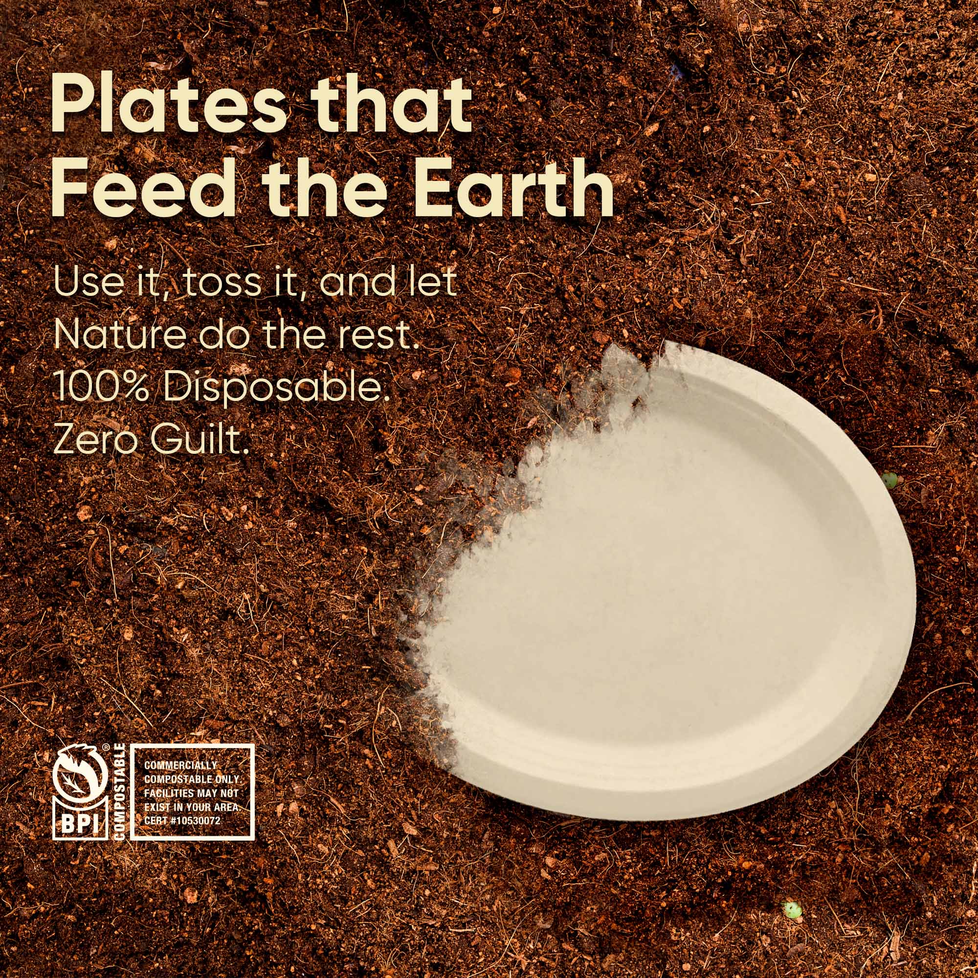 - ECO-FRIENDLY & COMPOSTABLE: Made from 100% natural sugarcane bagasse, these plates are biodegradable and compostable — a perfect sustainable alternative to plastic or foam plates.