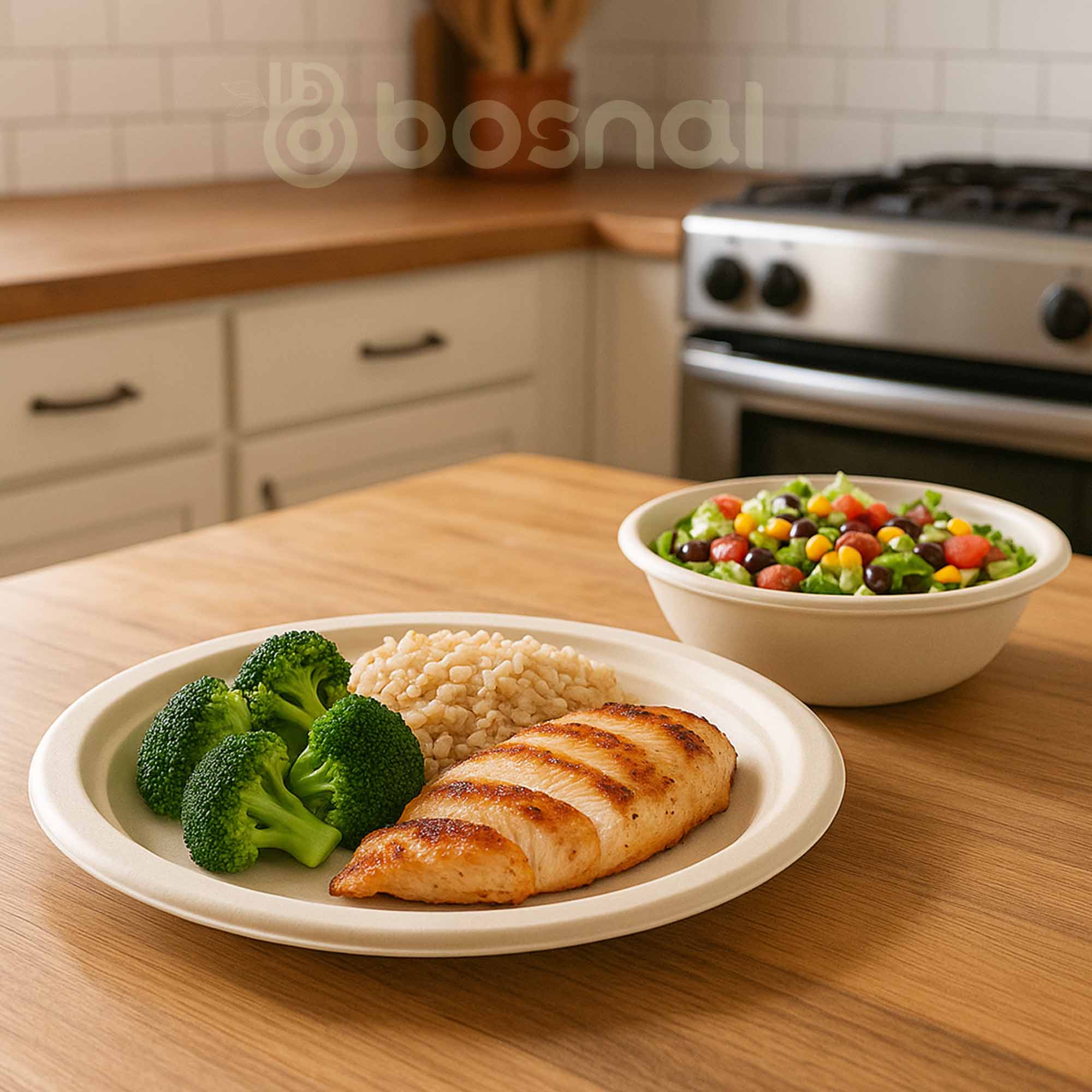 Bosnal - Sugarcane Bagasse Compostable 10 inch Round Plates with 32 Oz Bowls