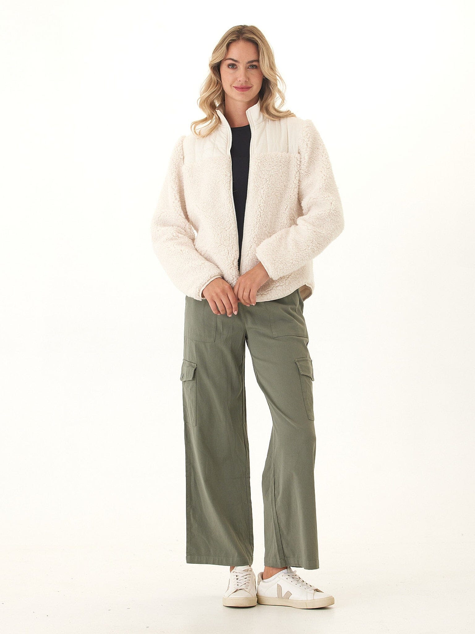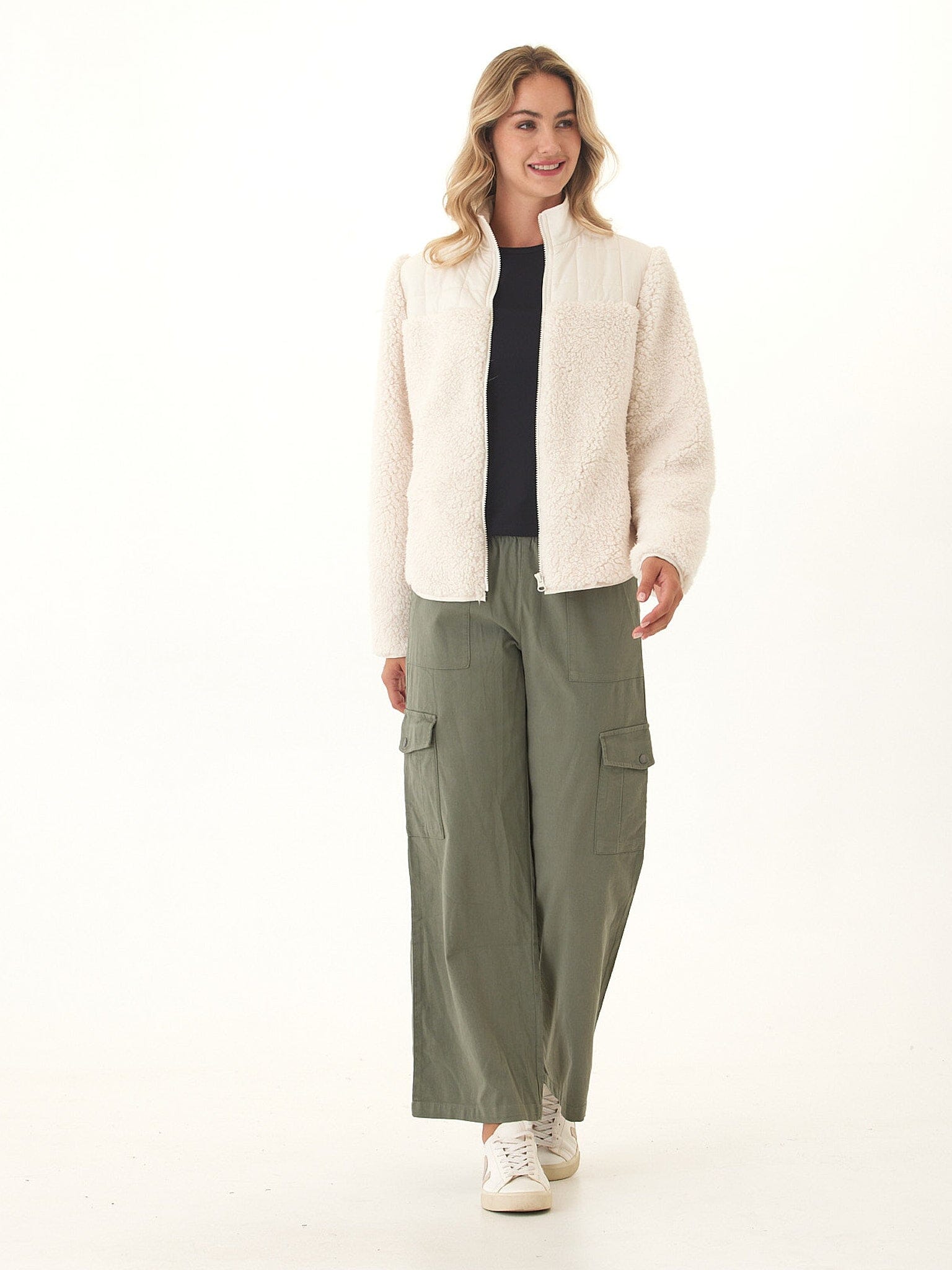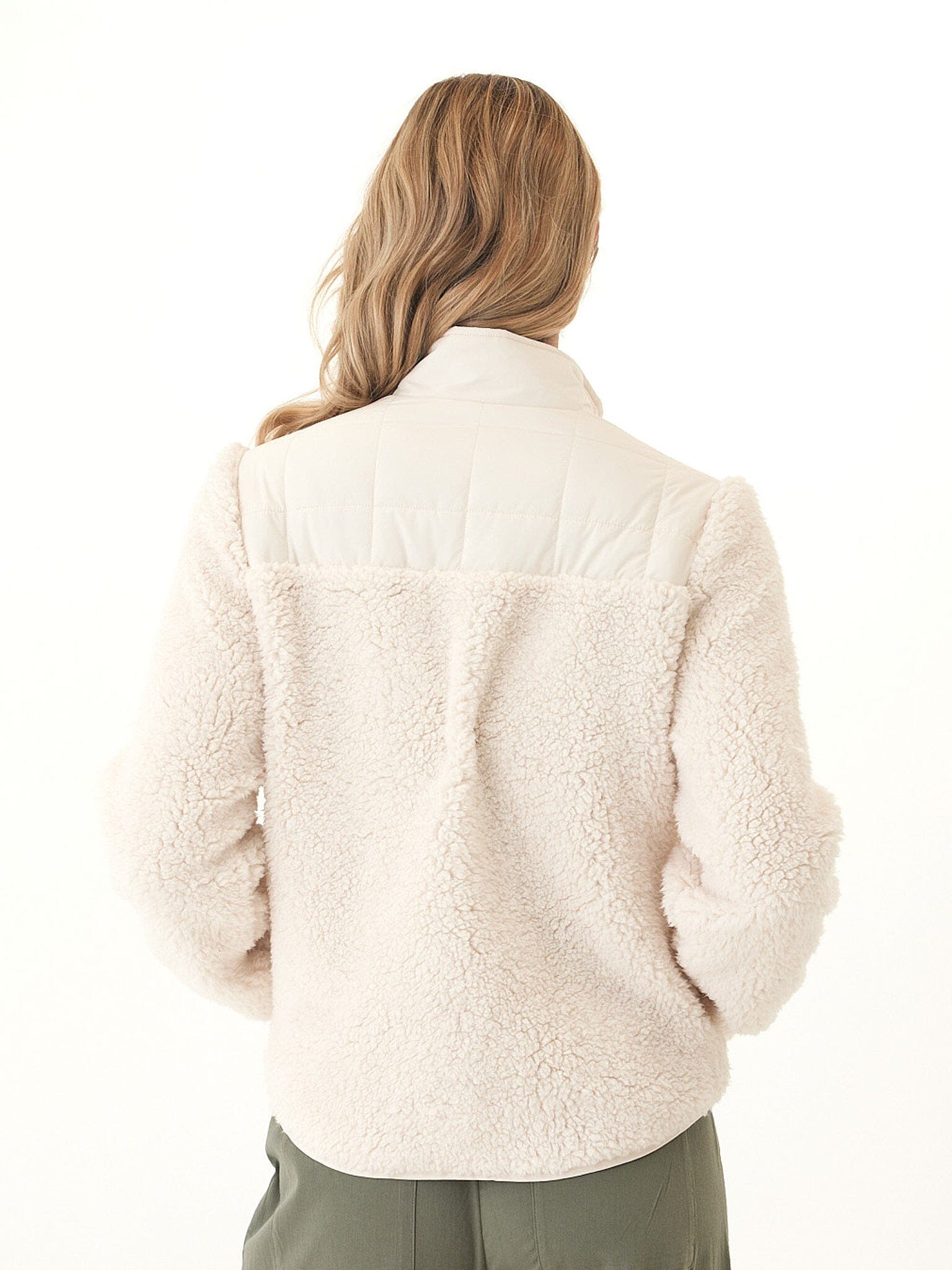 Cozy meets modern in this zip-front sherpa jacket. Designed with a plush, textured exterior and smooth quilted accents, it brings warmth without sacrificing style. The relaxed fit makes it easy to layer, while the stand collar adds extra comfort for chilly days. Perfect for everything from weekend errands to outdoor adventures, it’s the versatile layer you’ll reach for season after season.