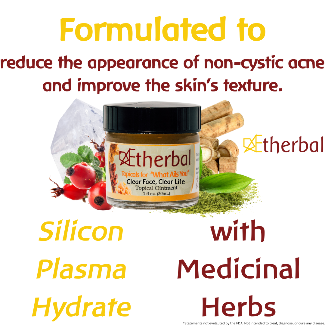 Ætherbal was frequently asked to create a product that would address the cosmetic needs of blemish-prone skin while also refining the appearance of past marks. After years of formulation and testing, Clear Face, Clear Life was born — a topical designed not only for clarity but also as a lasting companion in everyday skincare.