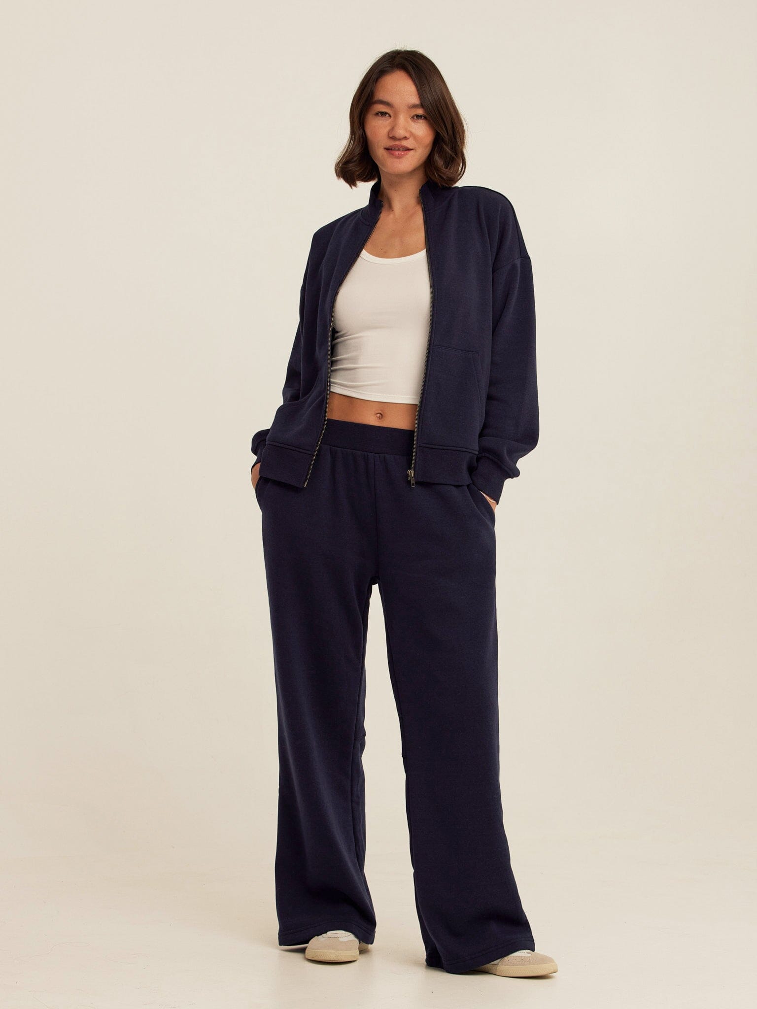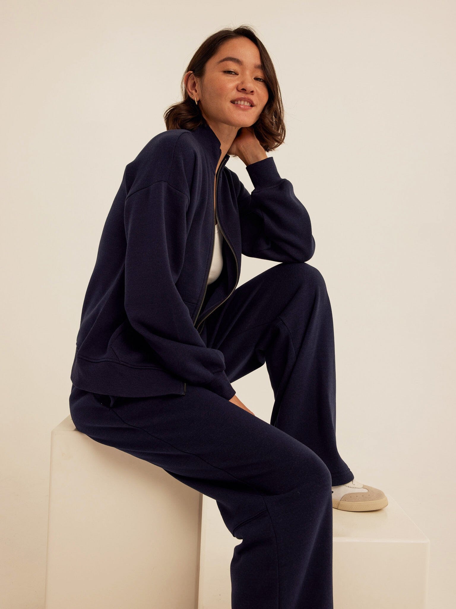 An easy layer with a polished feel. The Delacey Zip Jacket is made from our best-selling Triblend Fleece for soft, lightweight warmth that’s comfortable all day. Designed with a relaxed fit and a streamlined stand collar, it features a full-zip front and side pockets for everyday ease. Perfect for layering over tees or pairing with matching fleece bottoms, this is a versatile piece you’ll reach for season after season.
