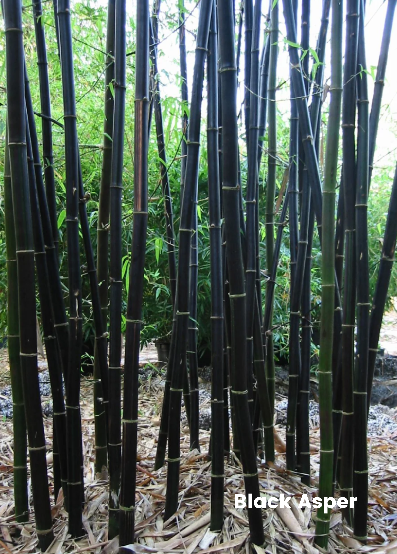 - Black Asper Bamboo (Bambusa lako) – An ornamental showstopper with jet-black culms and edible shoots. Reaches 50-70 feet—ideal for hedges, windbreaks, and gourmet dishes.