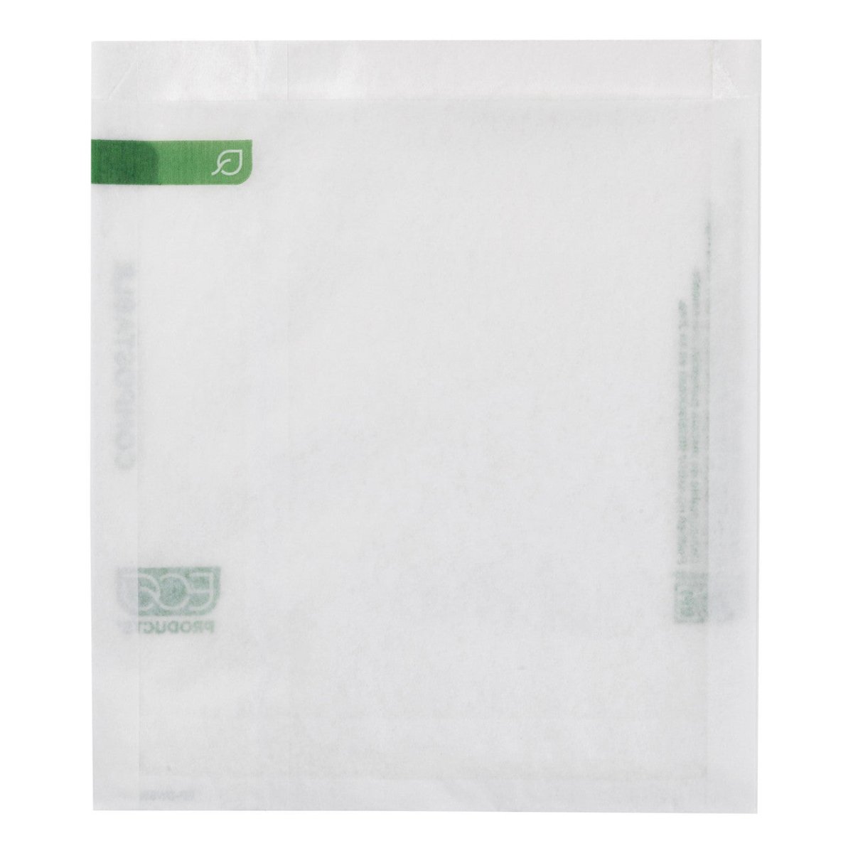 Expand your eco-friendly packaging options with this Eco-Products 6" x 6 1/2" white compostable dry waxed sandwich bag! Crafted from renewable resources, this bag is an eco-friendly option for your establishment. The dry wax coating enhances grease resistance, ensuring that your sandwiches and snacks remain delicious and mess-free. Whether you're serving up fresh cookies at your bakery or hamburgers at a concession stand, this bag provides excellent moisture protection, keeping your food items looking and tasting their best.