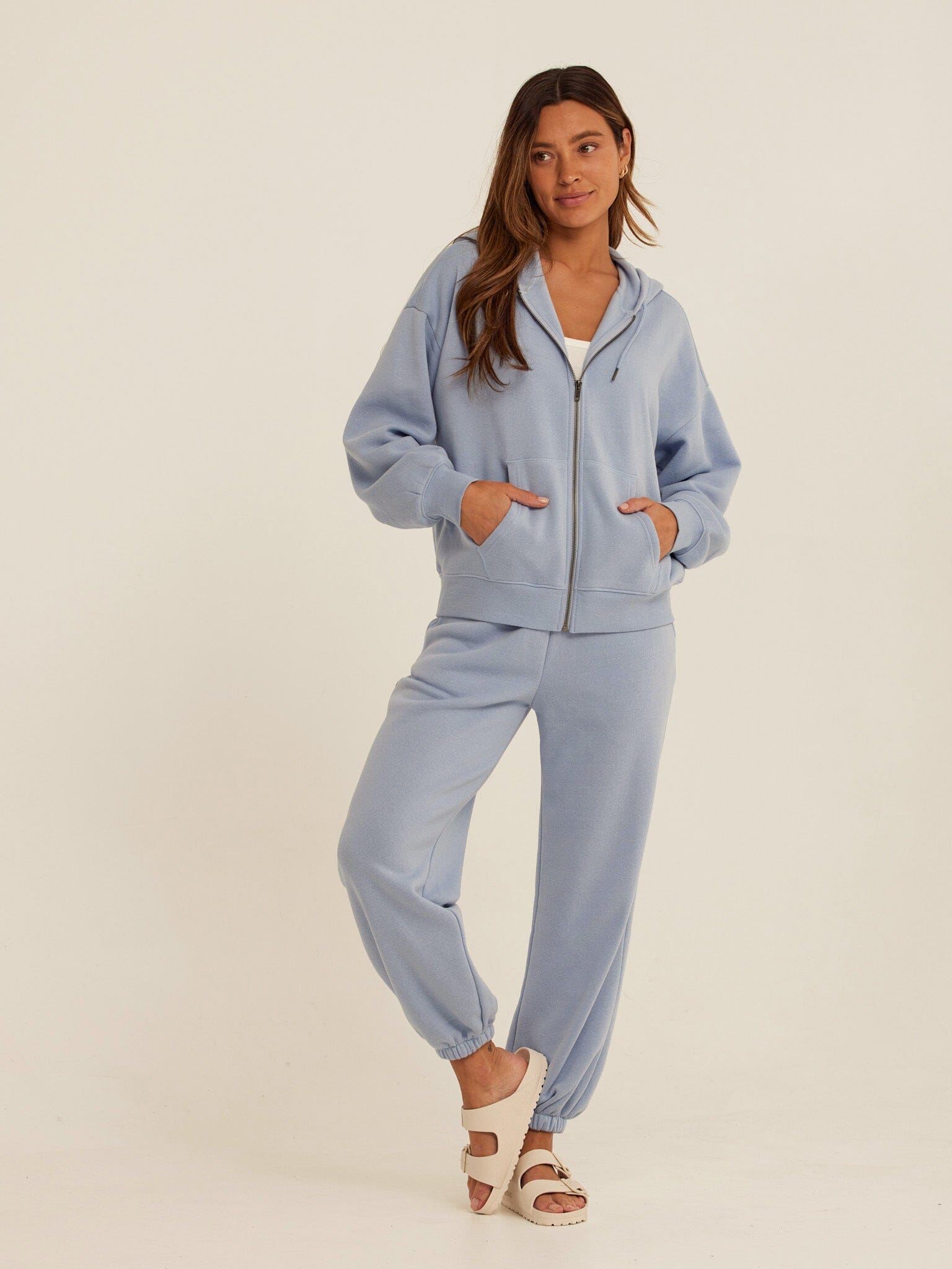An everyday essential designed for comfort that lasts. The Jayla Triblend Fleece Jogger is made from our best-selling Triblend Fleece for a soft, lightweight warmth that feels easy all day. The relaxed fit offers room to move without feeling oversized, while the elastic waistband provides a comfortable, pull-on fit. Finished with ribbed cuffs and side pockets, this jogger is perfect for lounging, travel days, or casual wear on the go.