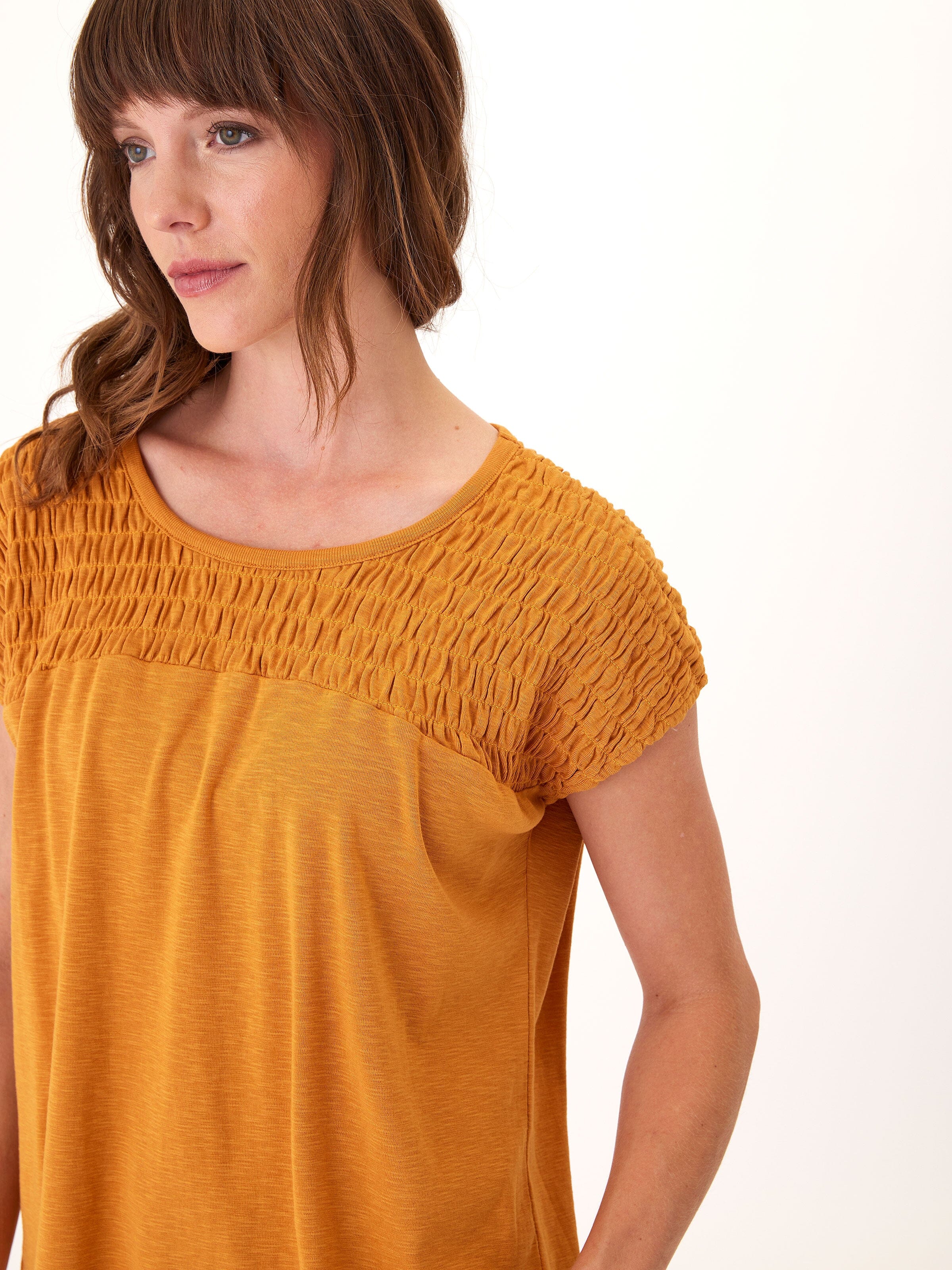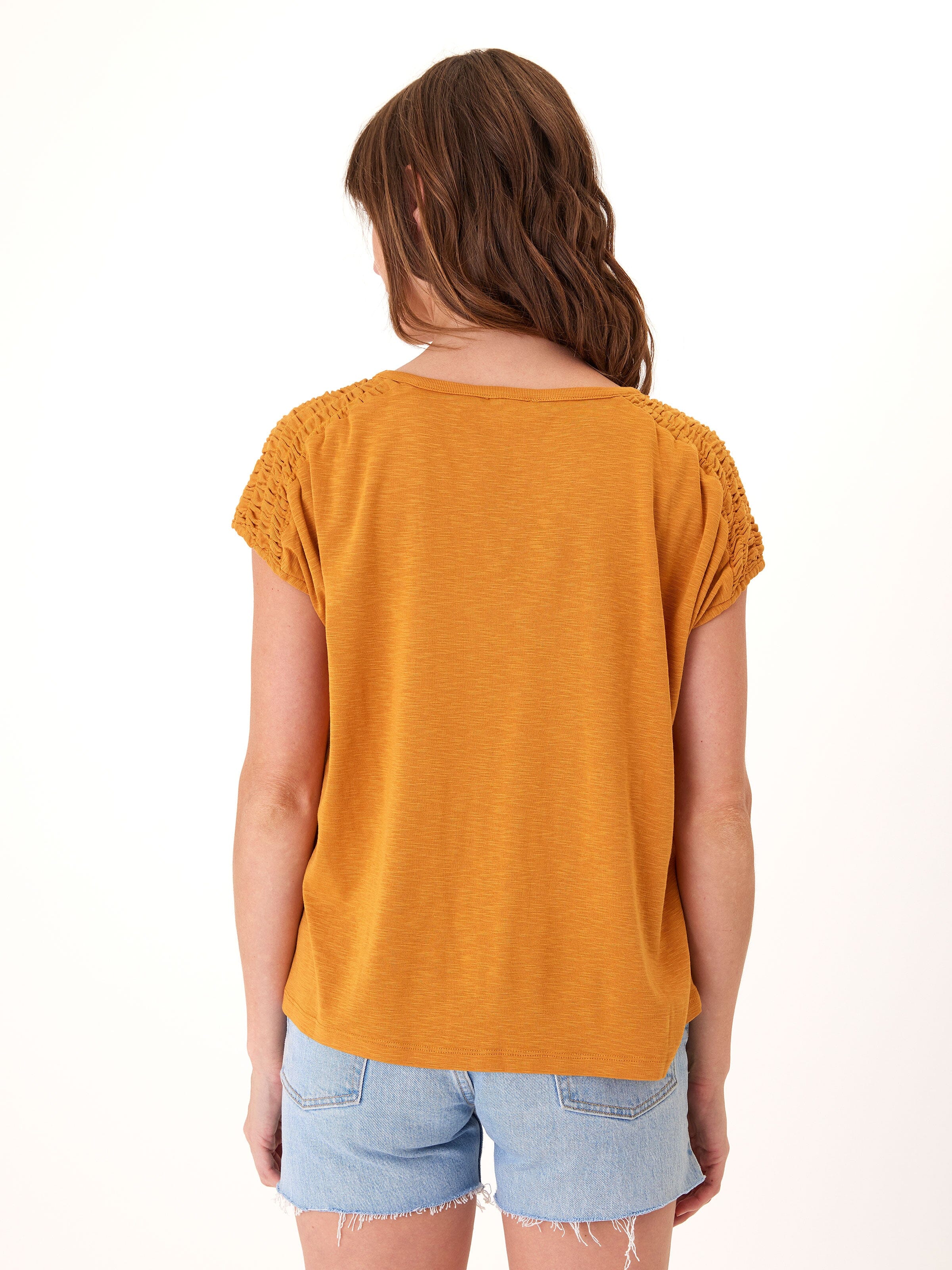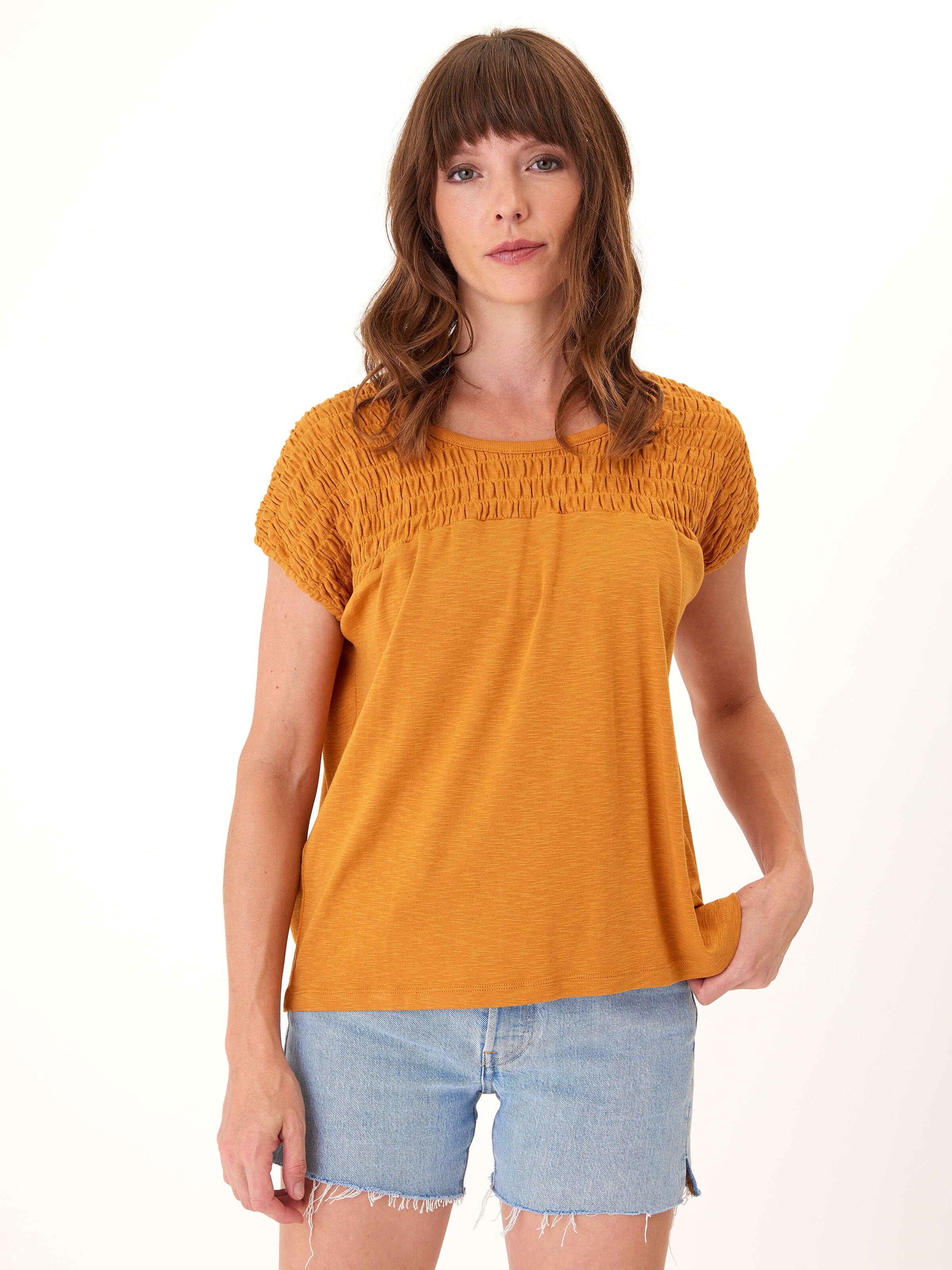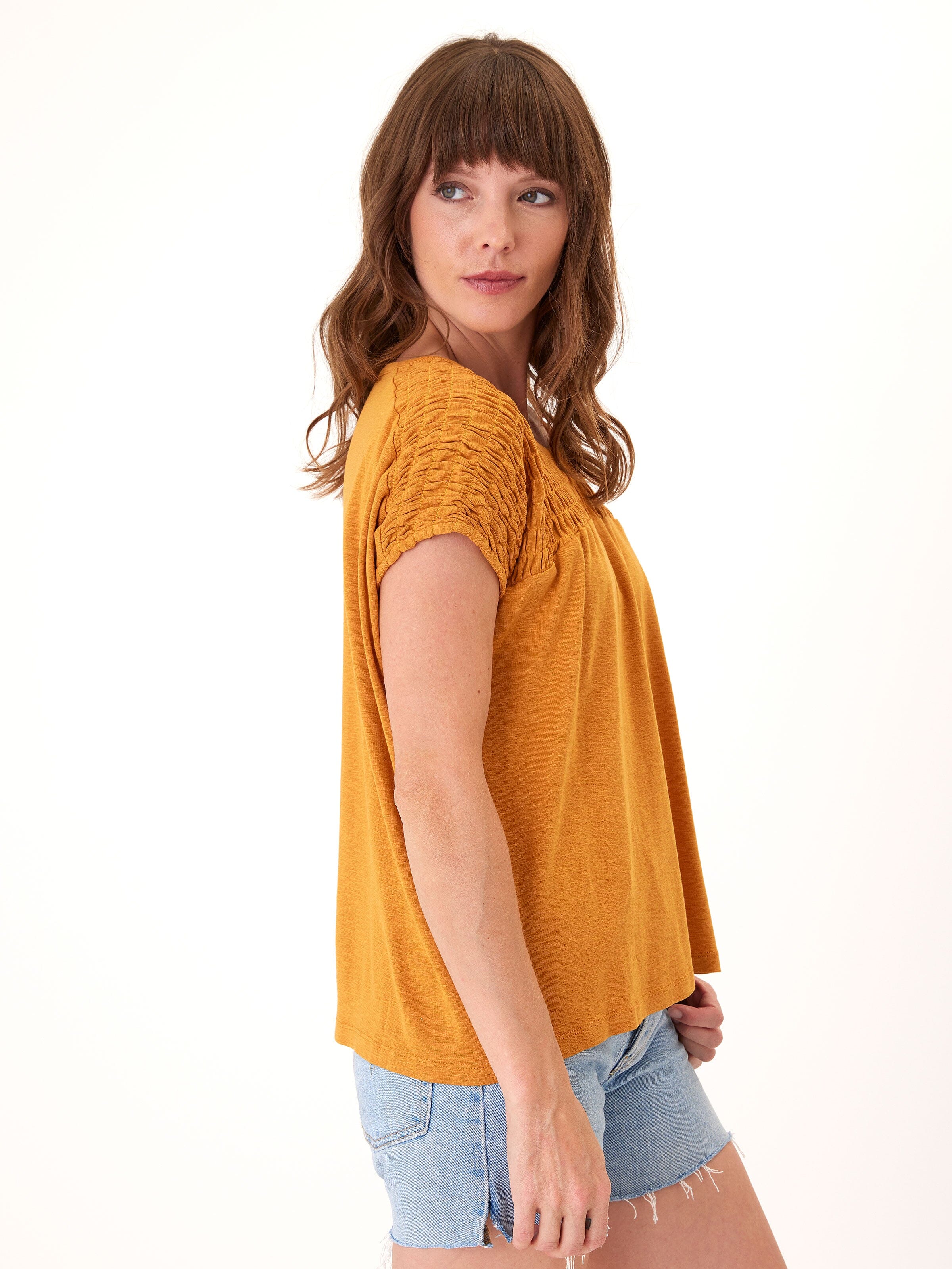 Karolina Textured Slub Jersey Smocked Top