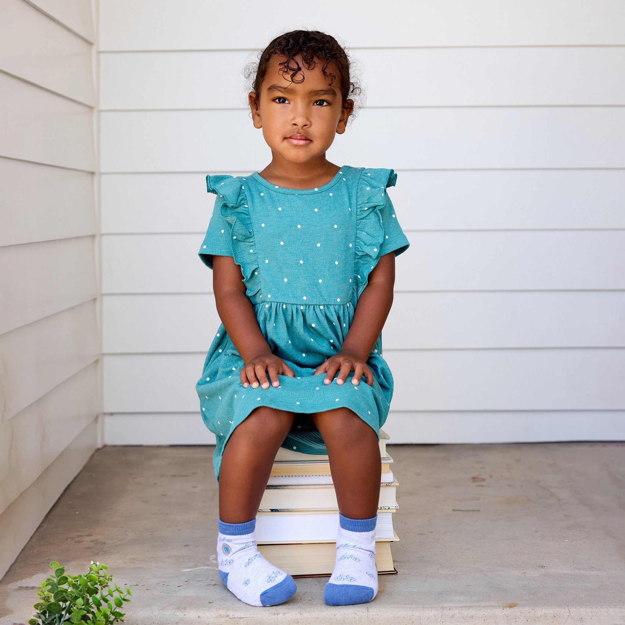 Socks for the bedtime story lovers! Now your bookworm can help little readers just like them with these fun, blue and gray bicycle-themed socks.