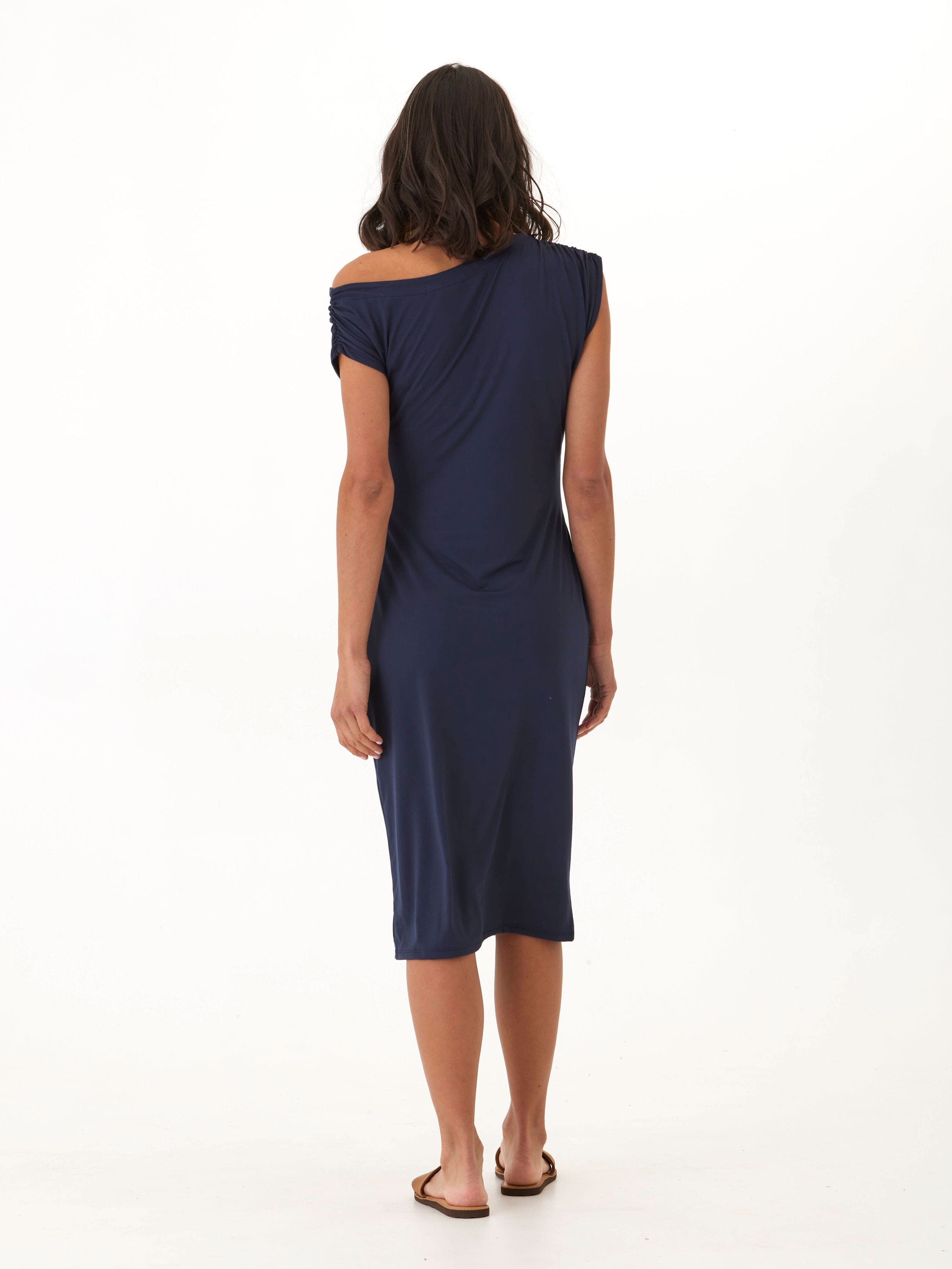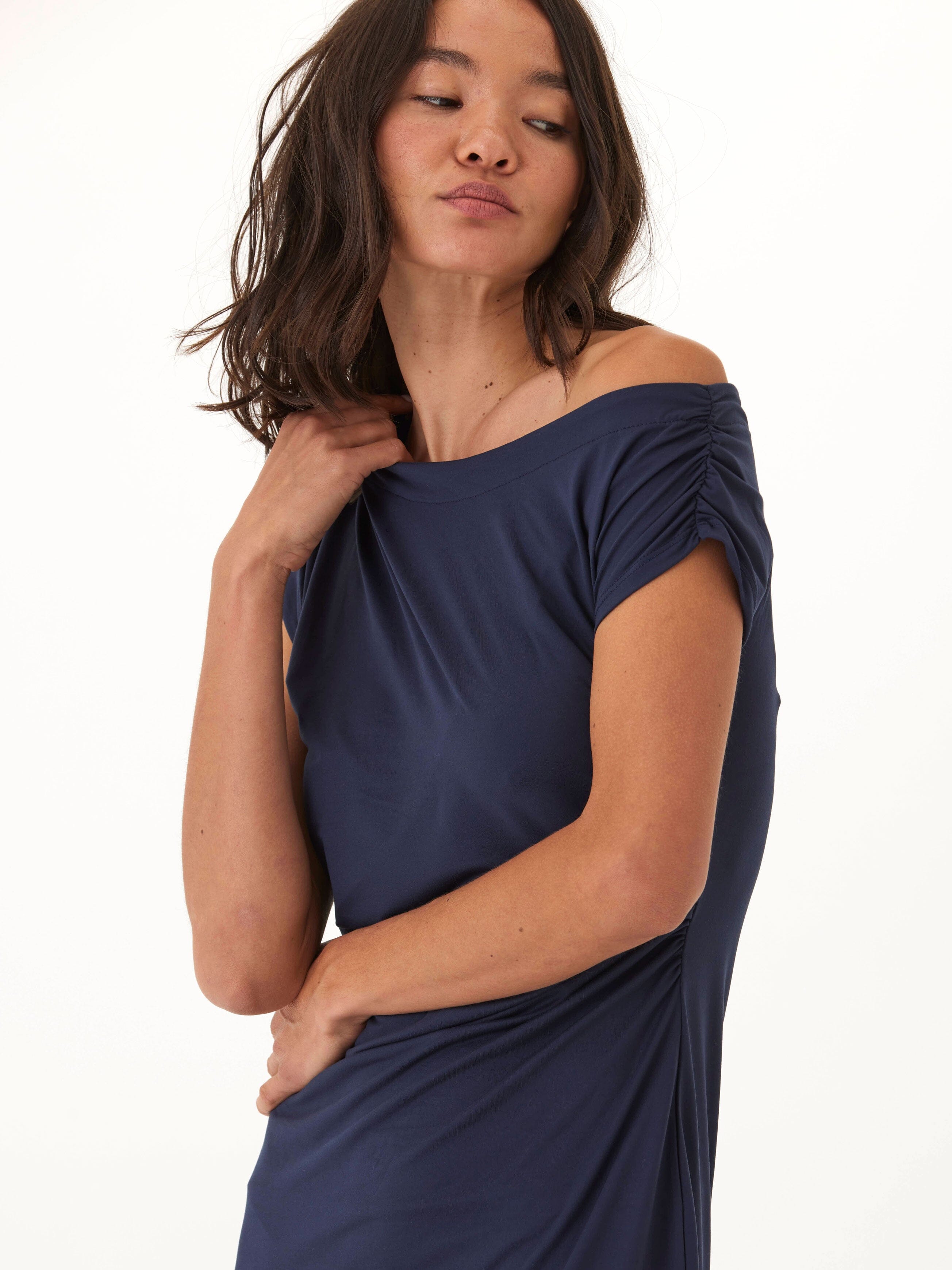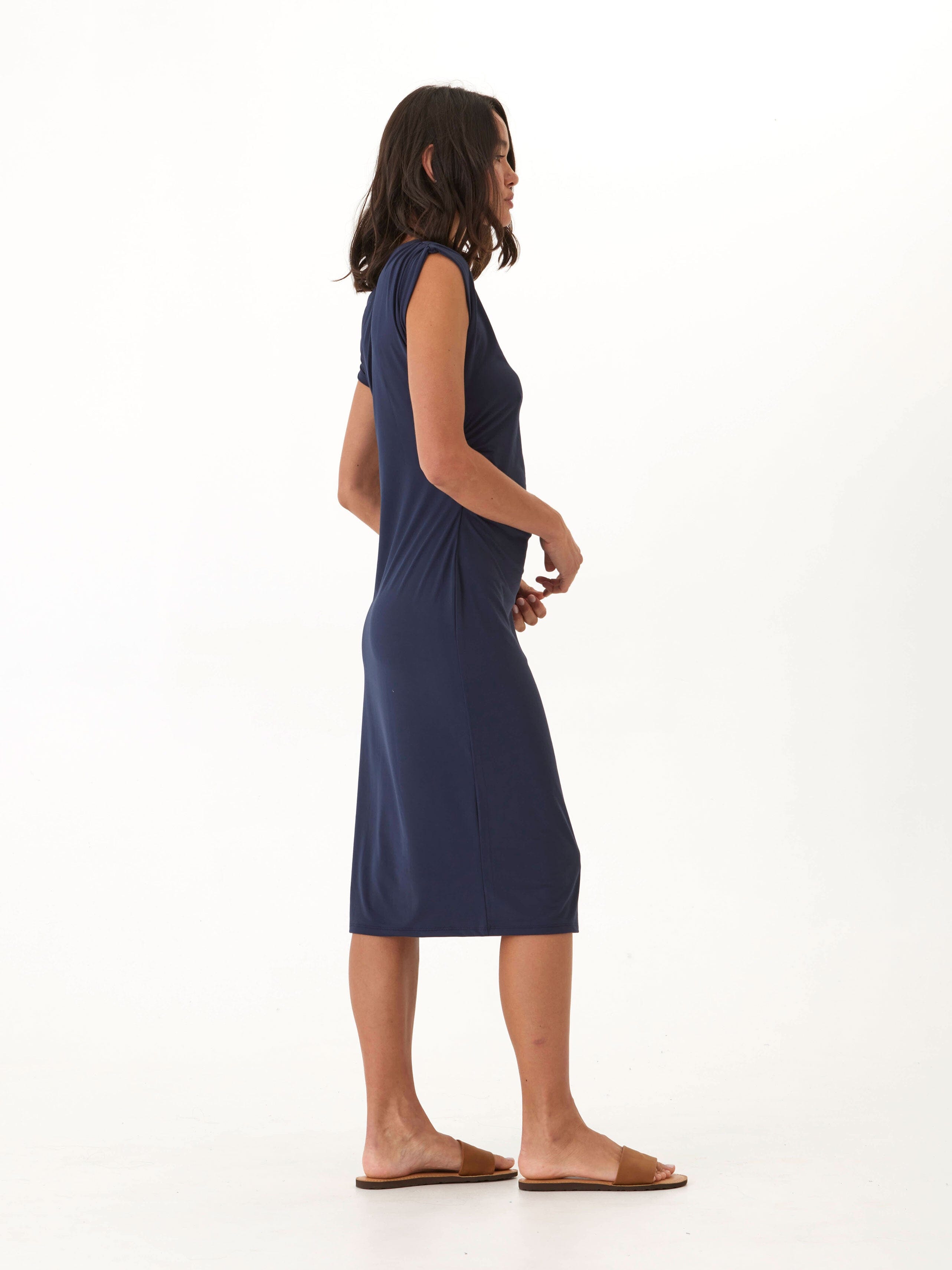 Leoni Luxe Jersey Ruched Midi Dress