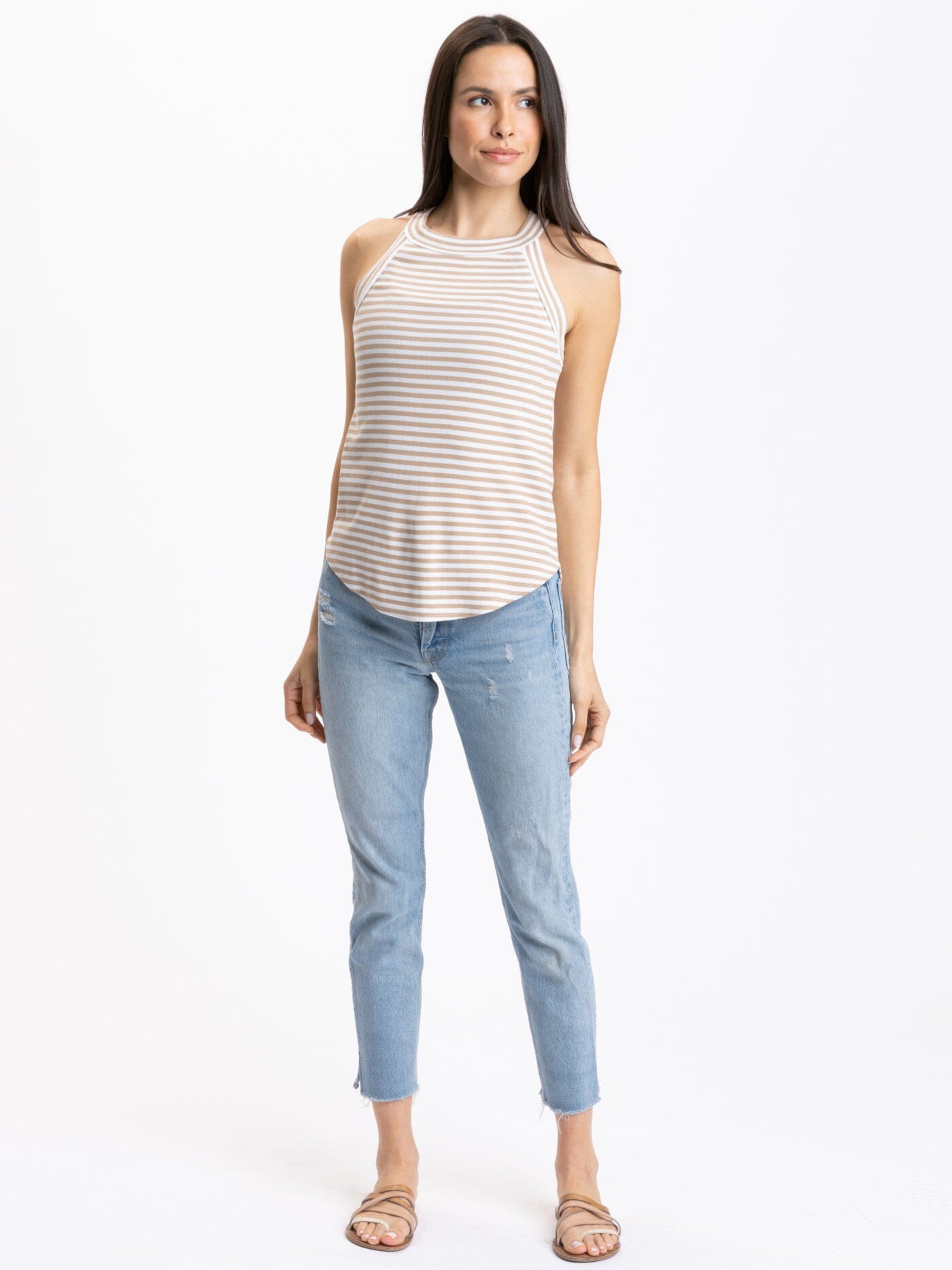 Our super soft Maresia Feather Rib Tank is a wardrobe staple, perfect for layering or worn on its own. Featuring a relaxed fit and high neck.