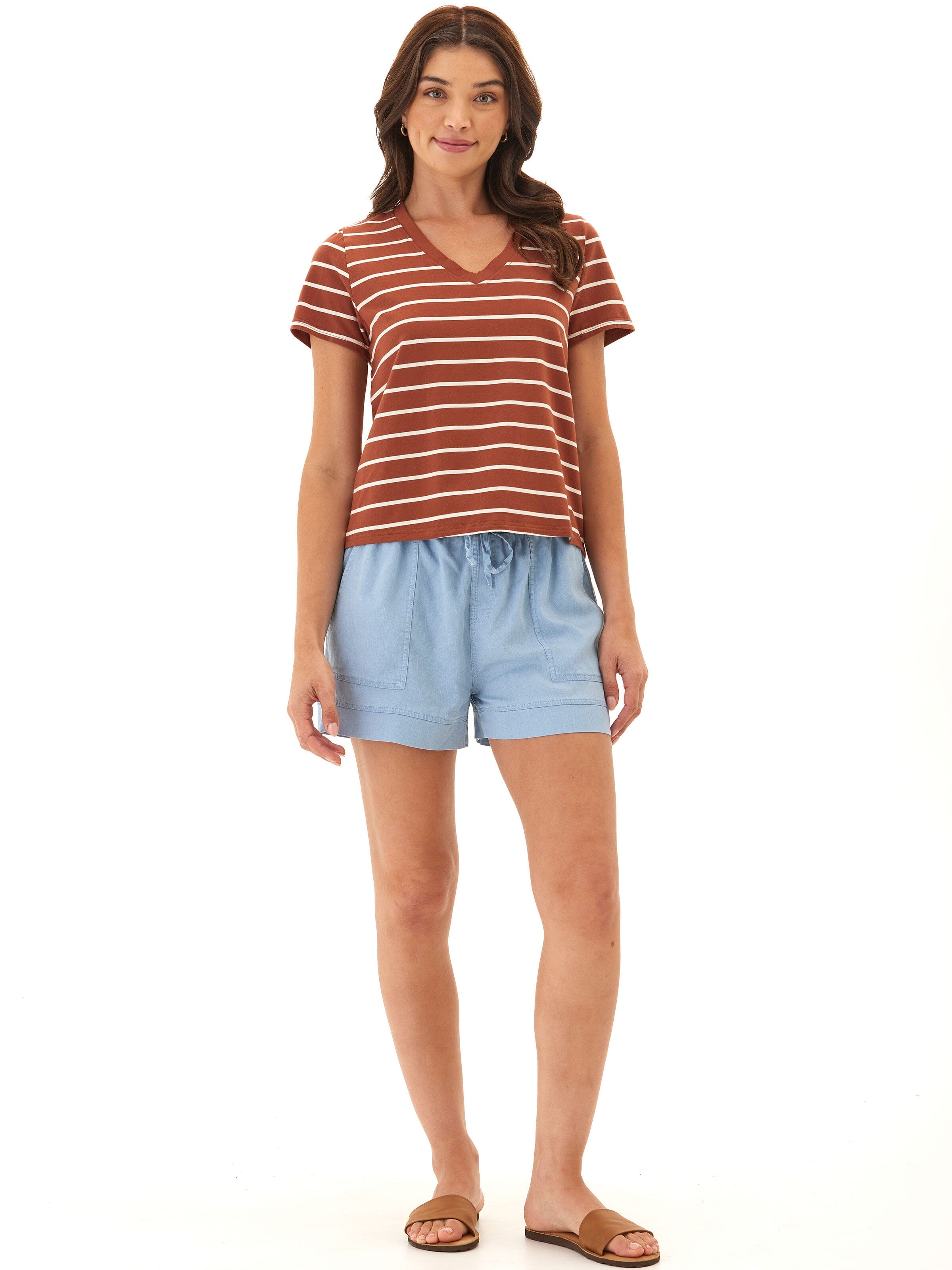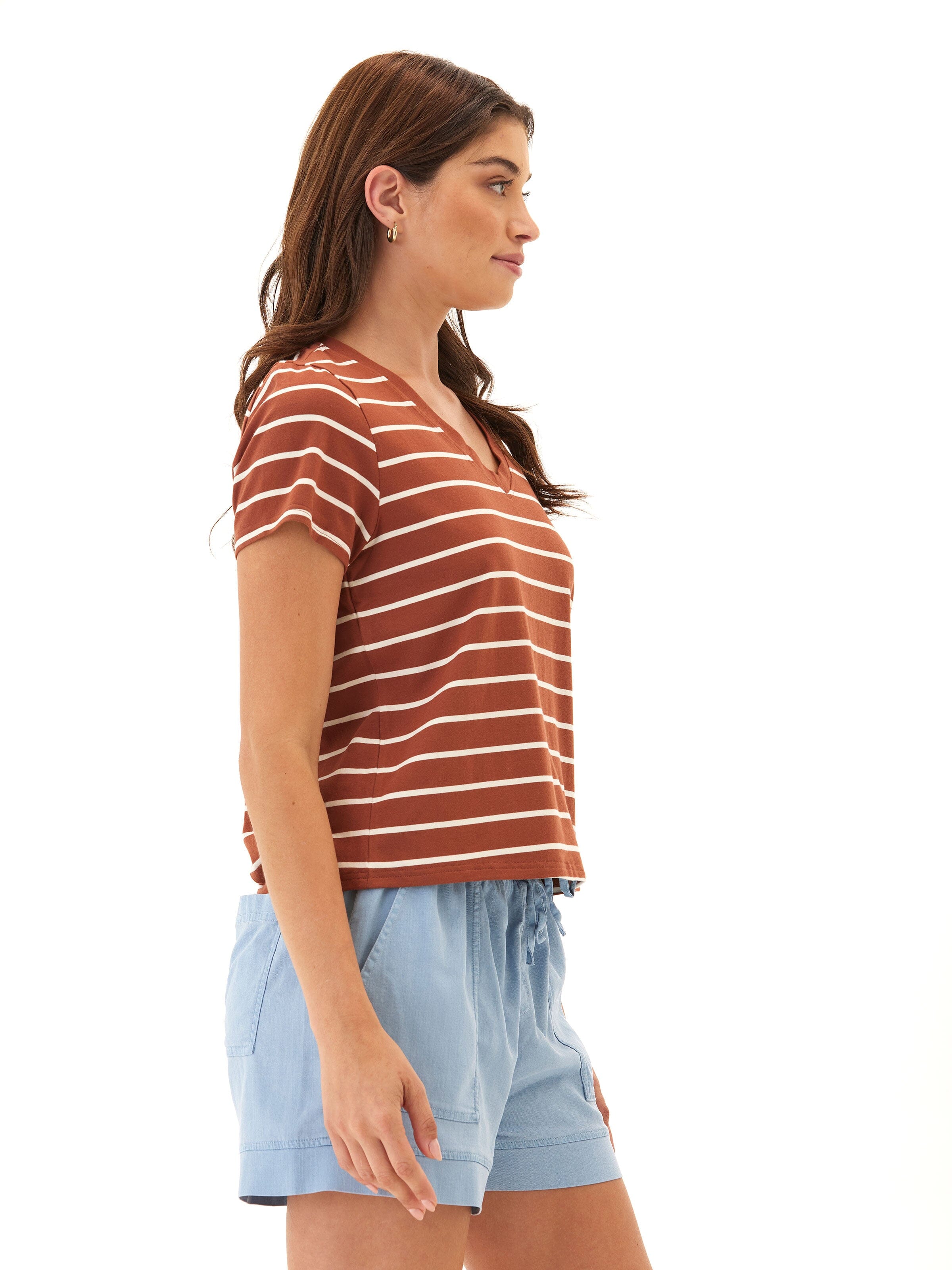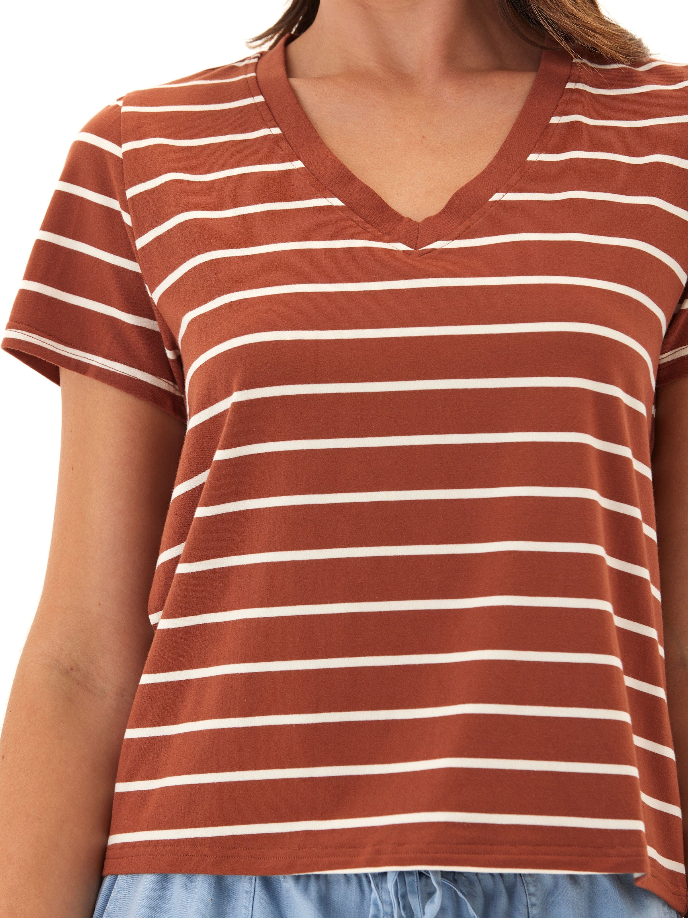 Maxine Caribbean Stripe Eco Jersey V-Neck Tee