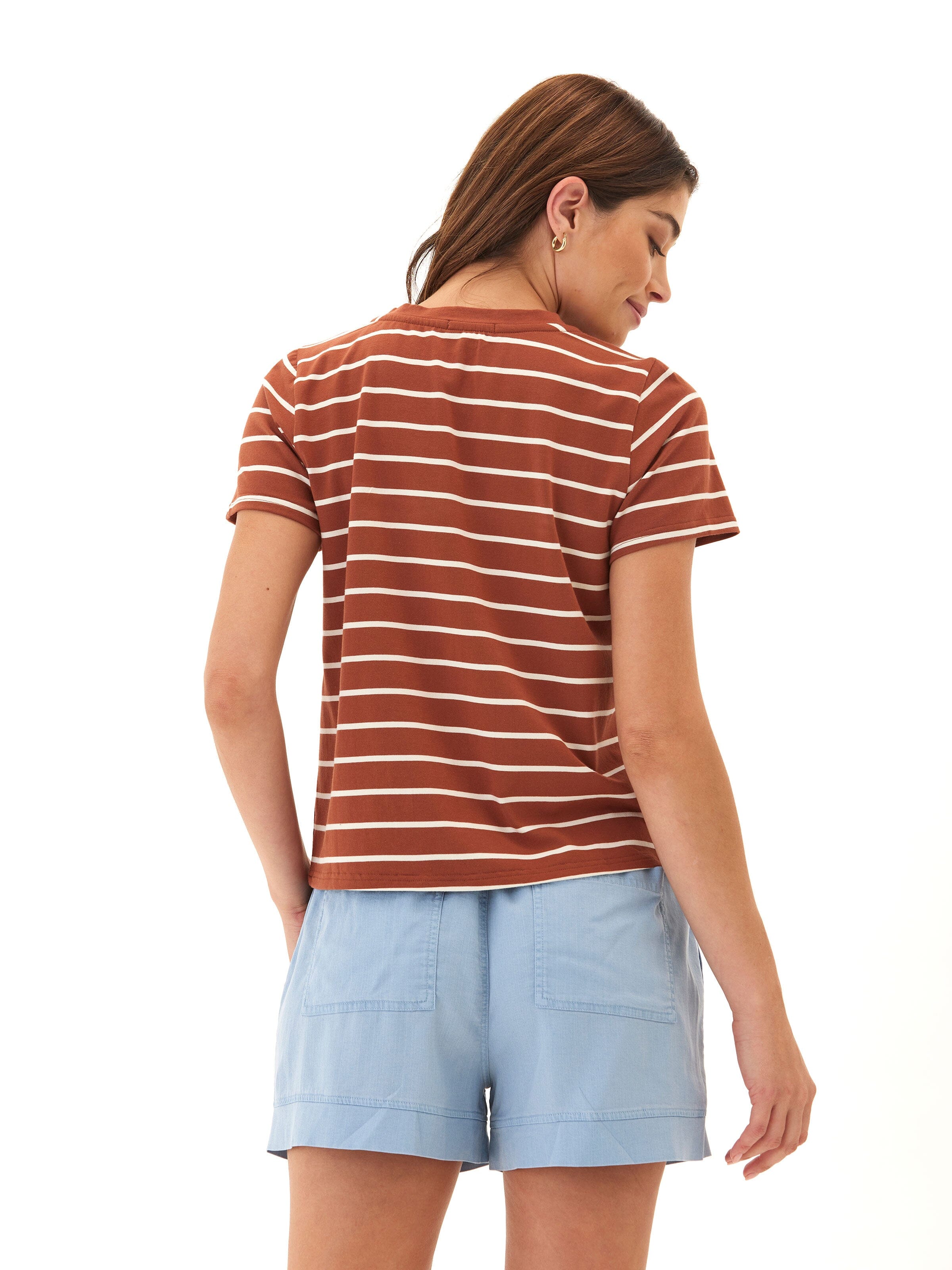 A timeless classic with a modern twist, our Striped V-Neck Cropped Tee is designed for effortless everyday wear. Made from our stretchy, breathable Eco Jersey fabric, this top is ultra-soft, lightweight, and sustainably crafted for all-day comfort. Featuring a flattering V-neckline, short sleeves, and a relaxed cropped fit, it pairs perfectly with high-waisted jeans, joggers, or your favorite sustainable leggings.