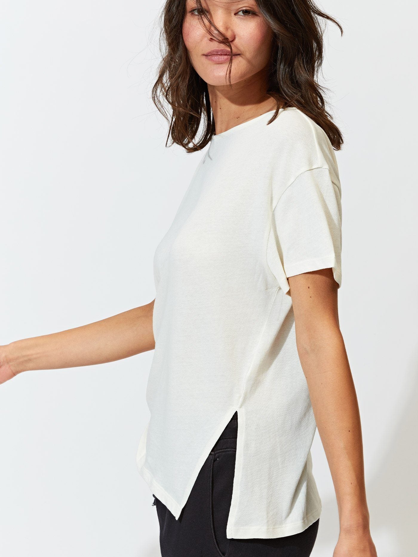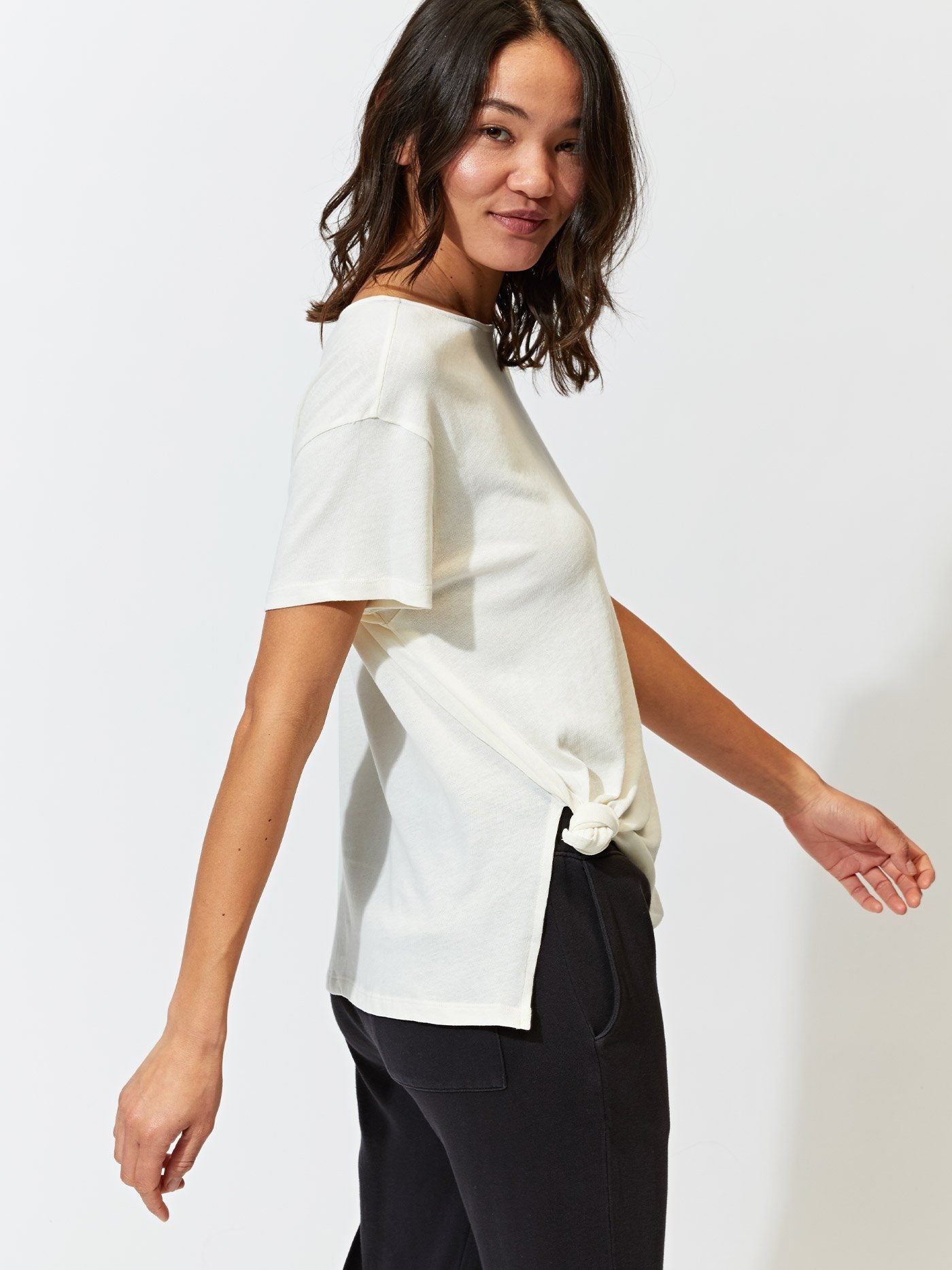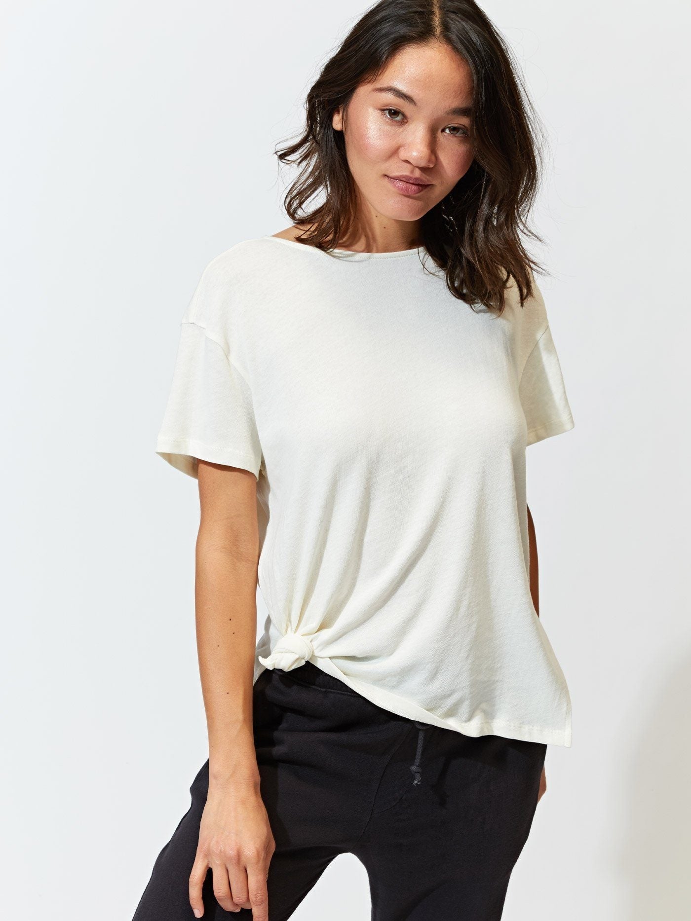A true staple, the 100% organic cotton Rebekah Knotted Tee is featured in an oversized, slouchy silhouette with a knot allowing for the perfect lived-in look.