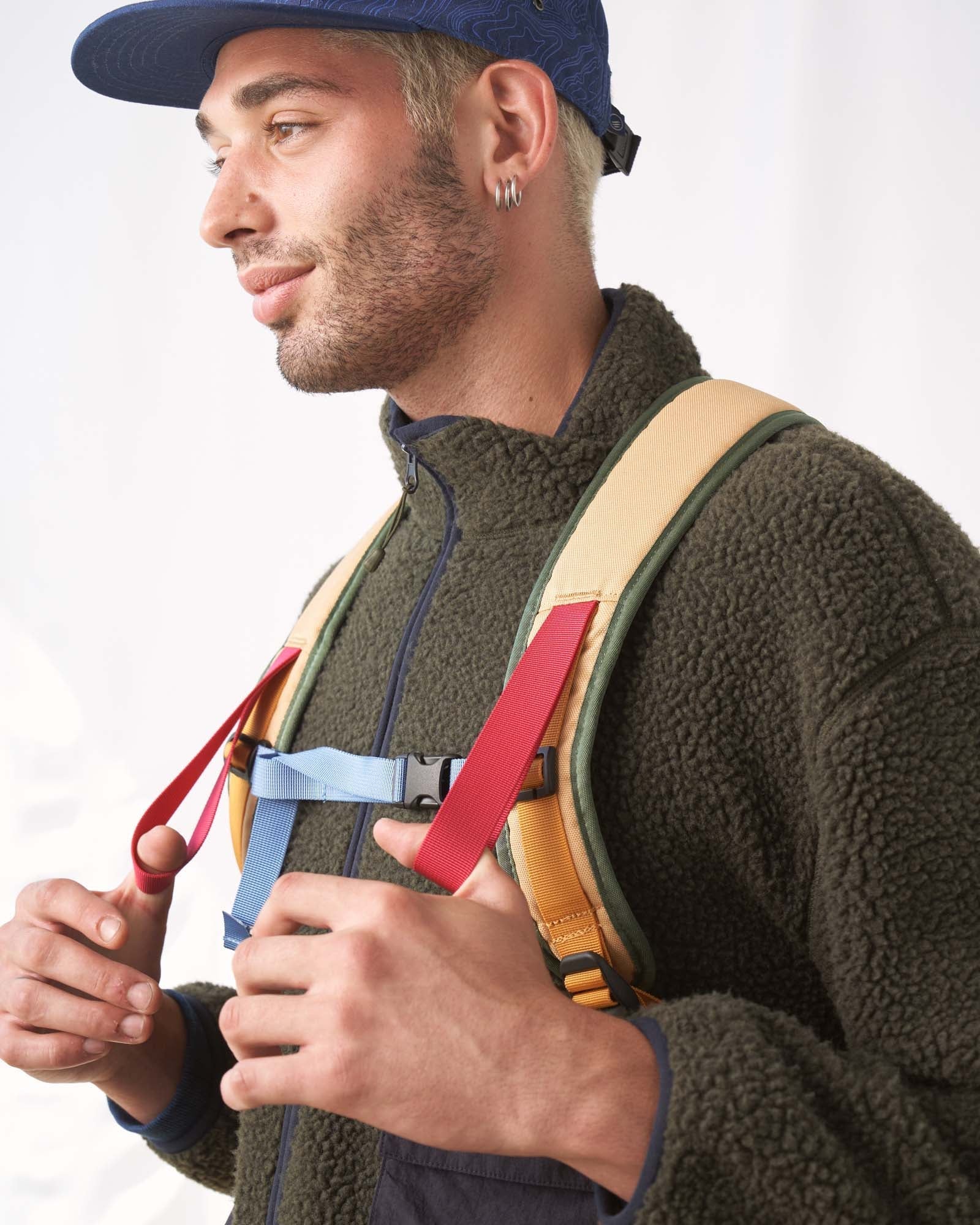- 100% recycled polyester body, 100% recycled nylon webbing, water-resistant finish