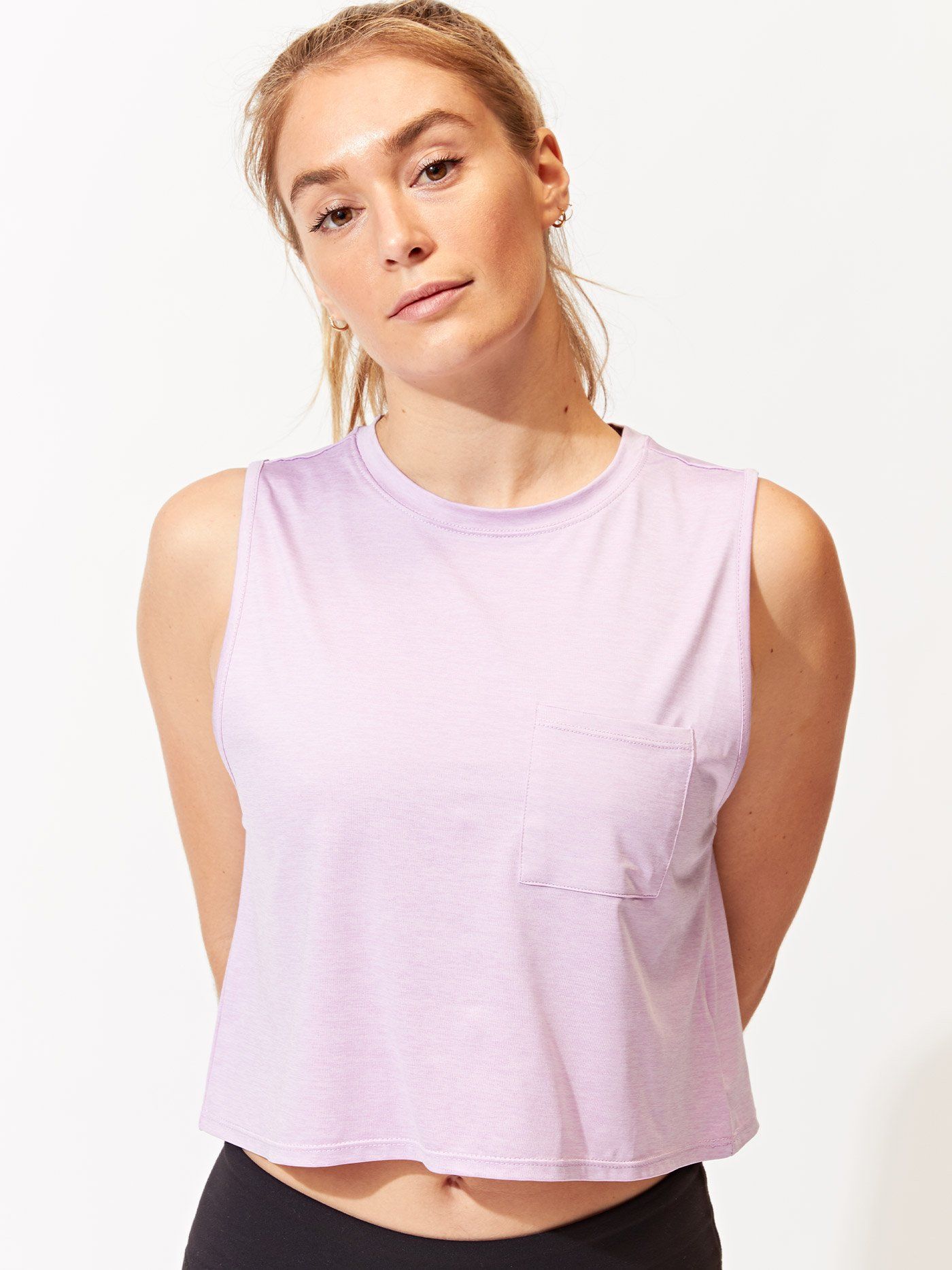 Made of our eco lightweight performance jersey, the Rochelle Crop Tank is the perfect essential tank top. Cropped at the waist with a left-side pocket, this top looks adorable paired with high-waisted leggings or jeans.