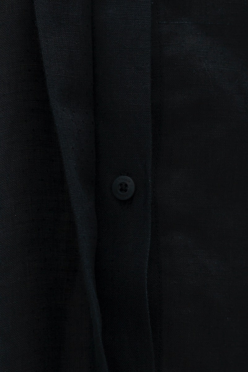 Details - Wide, square fit- Pointed stand collar- Hidden button-up front- Elbow-length kimono sleeves- The dye of Licorice & Sommerhus are GOTS certified- The buttons are Eco-rozo, recycled buttons made from tagua waste