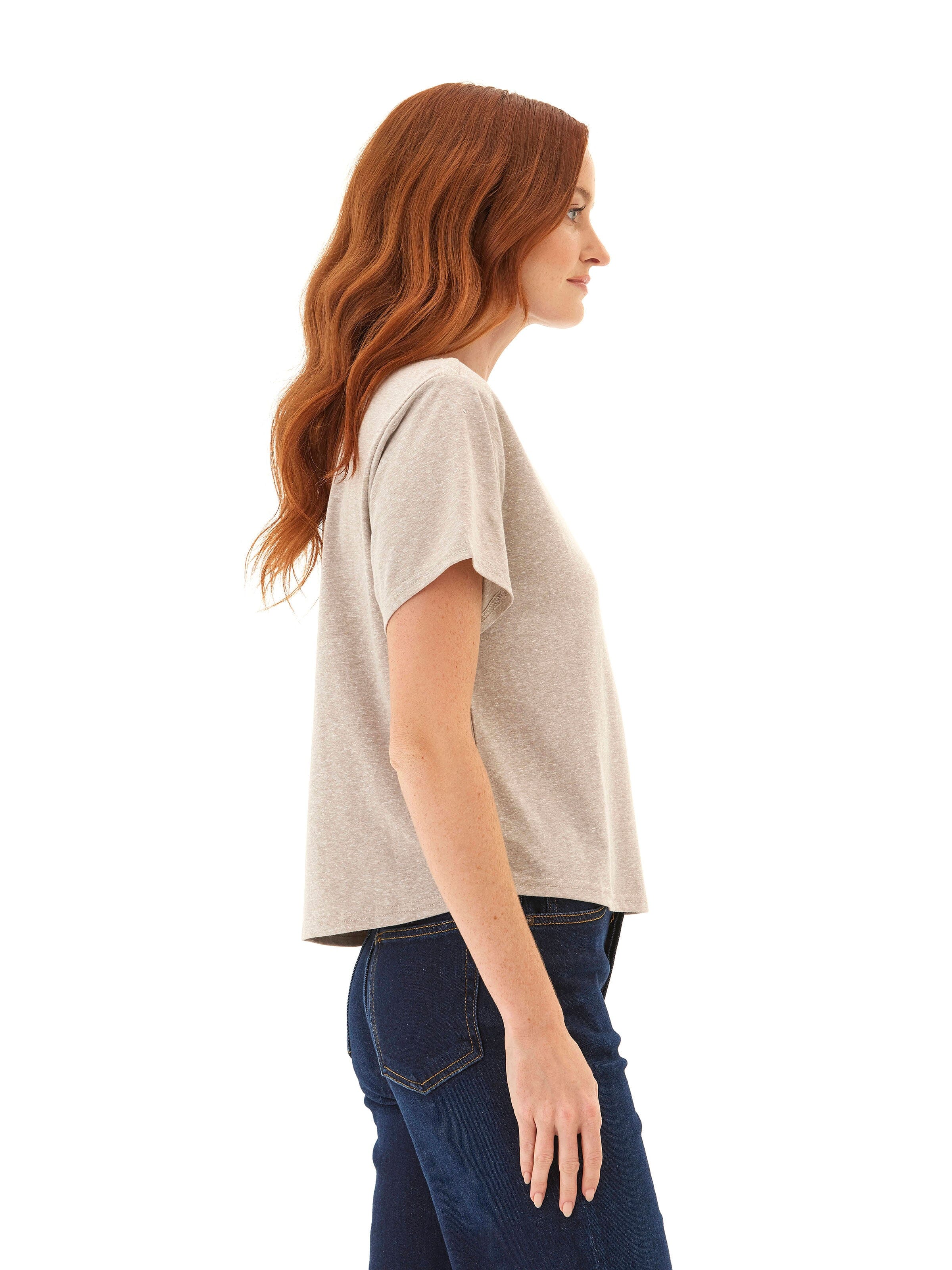The Shelbie Tee is made from our super soft (and sustainable) blend of recycled polyester, organic cotton and rayon. We garment dye each one for a perfectly fitted ultra soft finish. This tee hits right at your high waist is perfectly paired with your favorite leggings, denim or shorts!