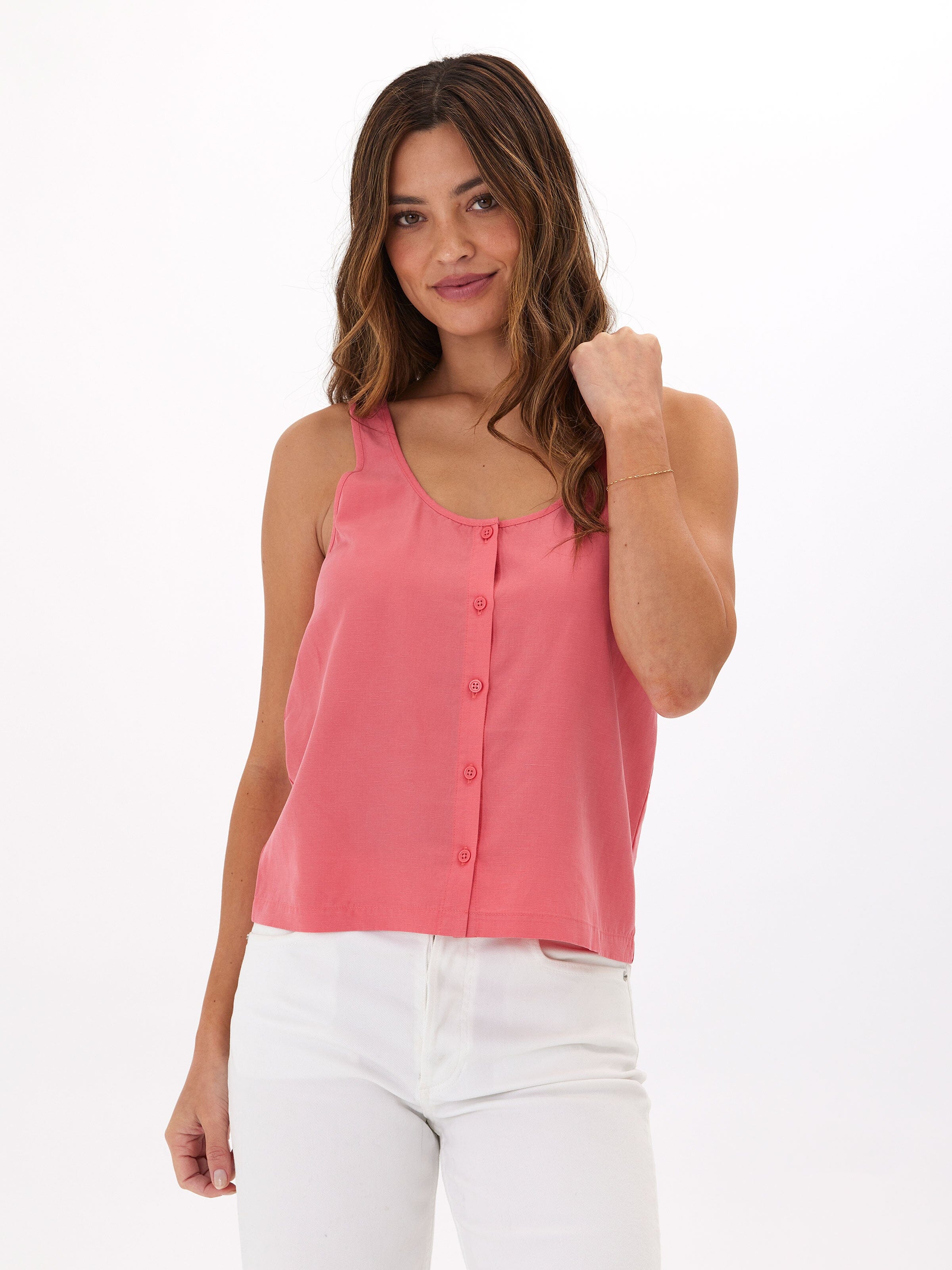 Made from our airy, breathable Breezy Linen, this tank offers a relaxed fit for ultimate comfort. The stylish button front details add a touch of elegance to this must-have piece. Stay cool and stylish all season long!