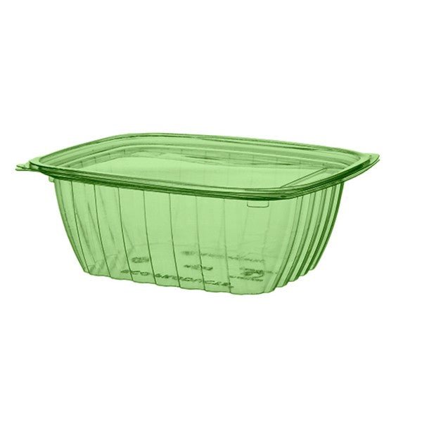 32oz PLA deli container base and lid. Part of our Veridian range. Perfect presentation for salad bars - serve cold salads, deli treats, or fruit. Made from PLA, a renewable material, made from plants. Green tinge to help customers in Washington and Colorado comply with legislation. Award-winning quality by Vegware, made from plants. Designed for industrial composting.