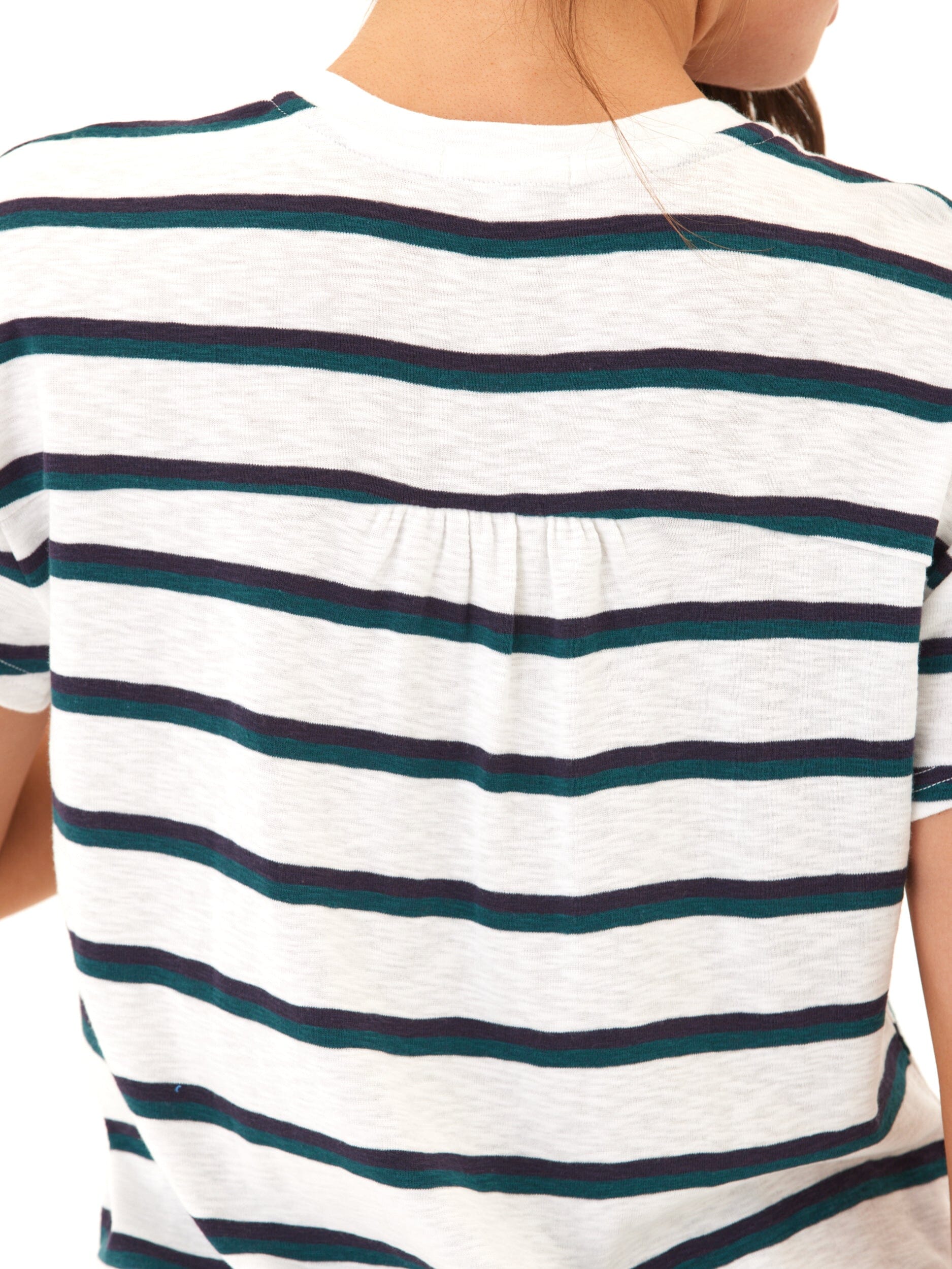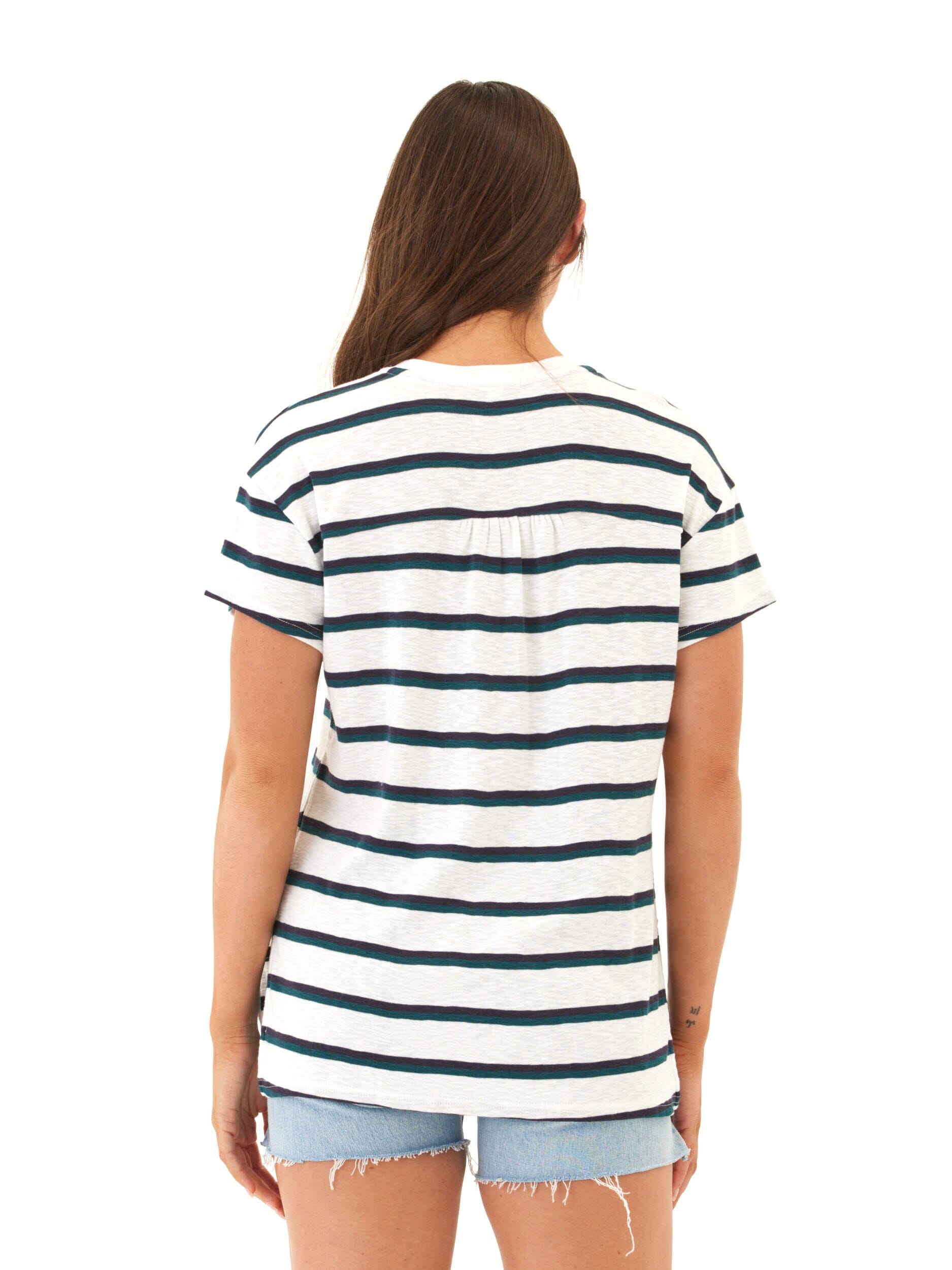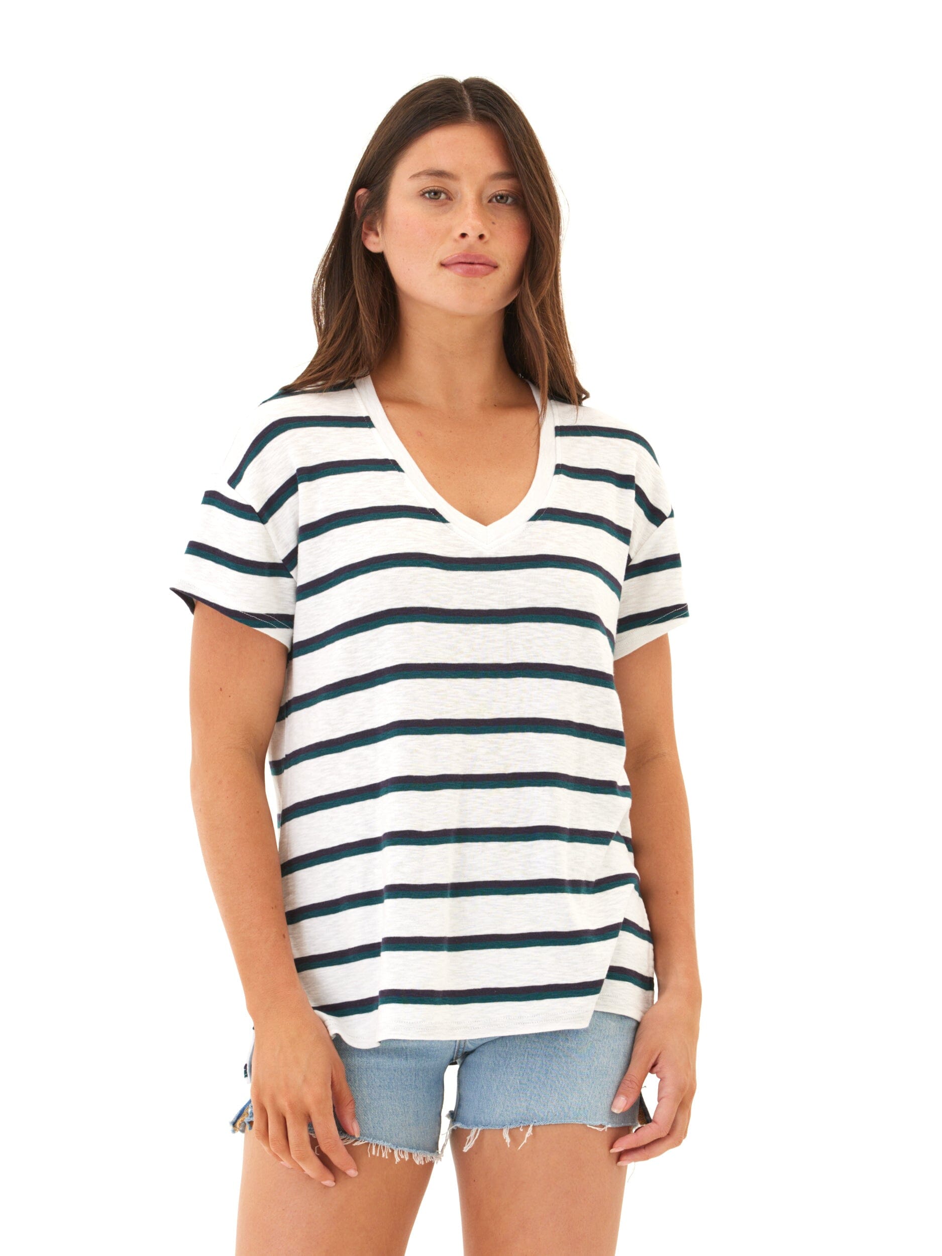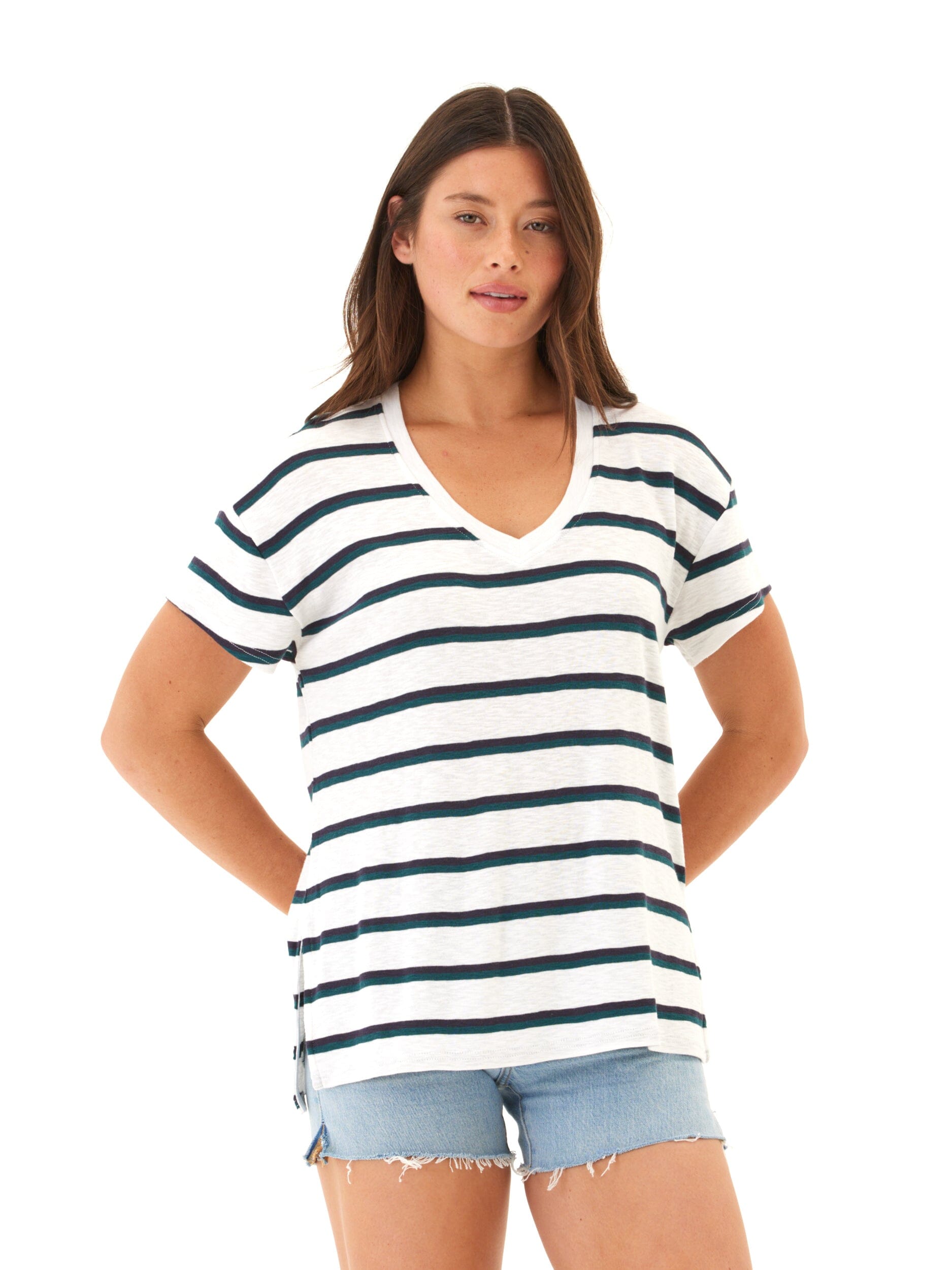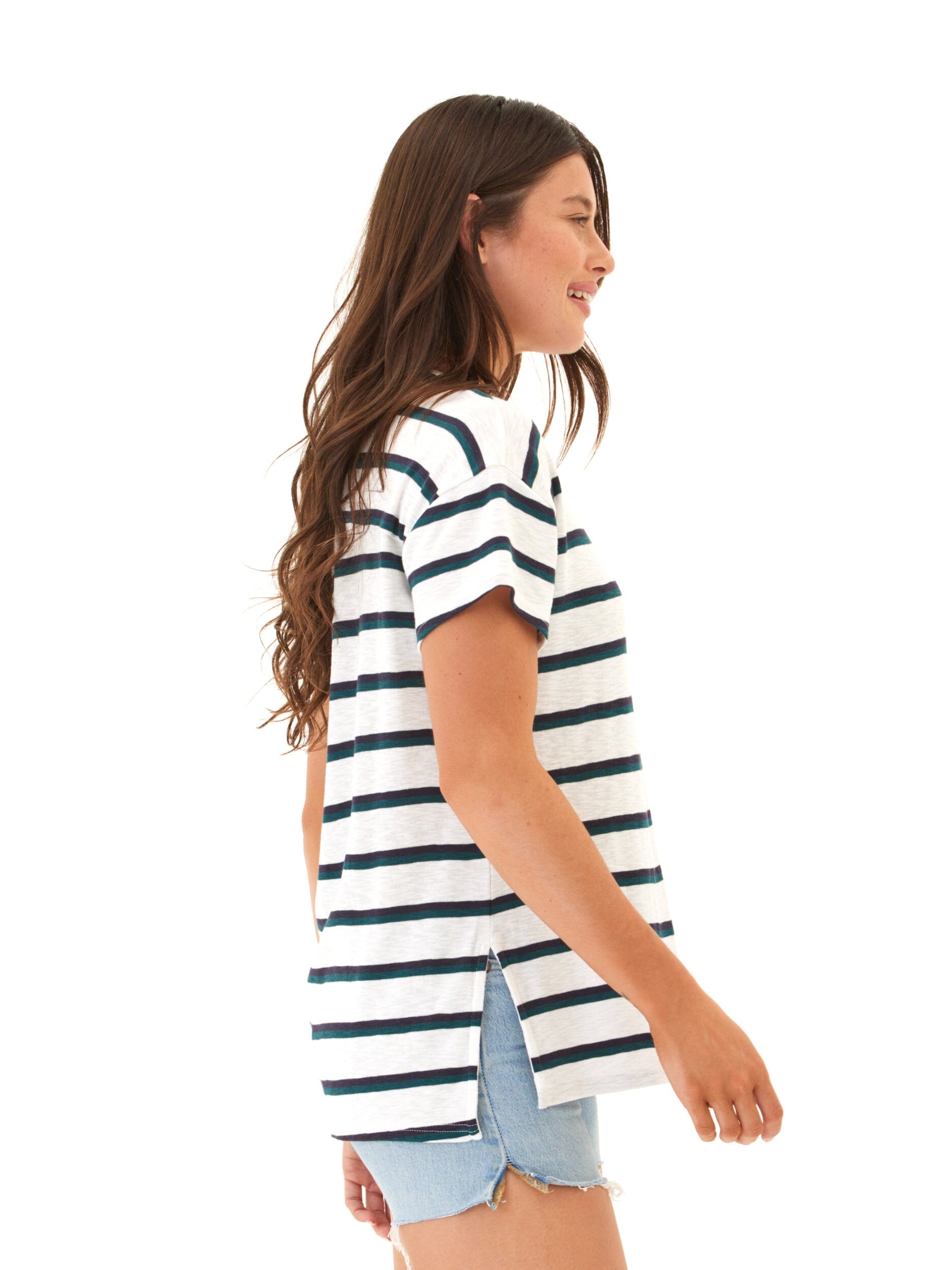 An easy everyday essential, this striped tee is made from our lightweight and breathable slub jersey for a soft, lived-in feel. Designed with a relaxed fit, flattering V-neckline, and side slits for added movement, it’s perfect for laid-back days or layering under your favorite jacket.